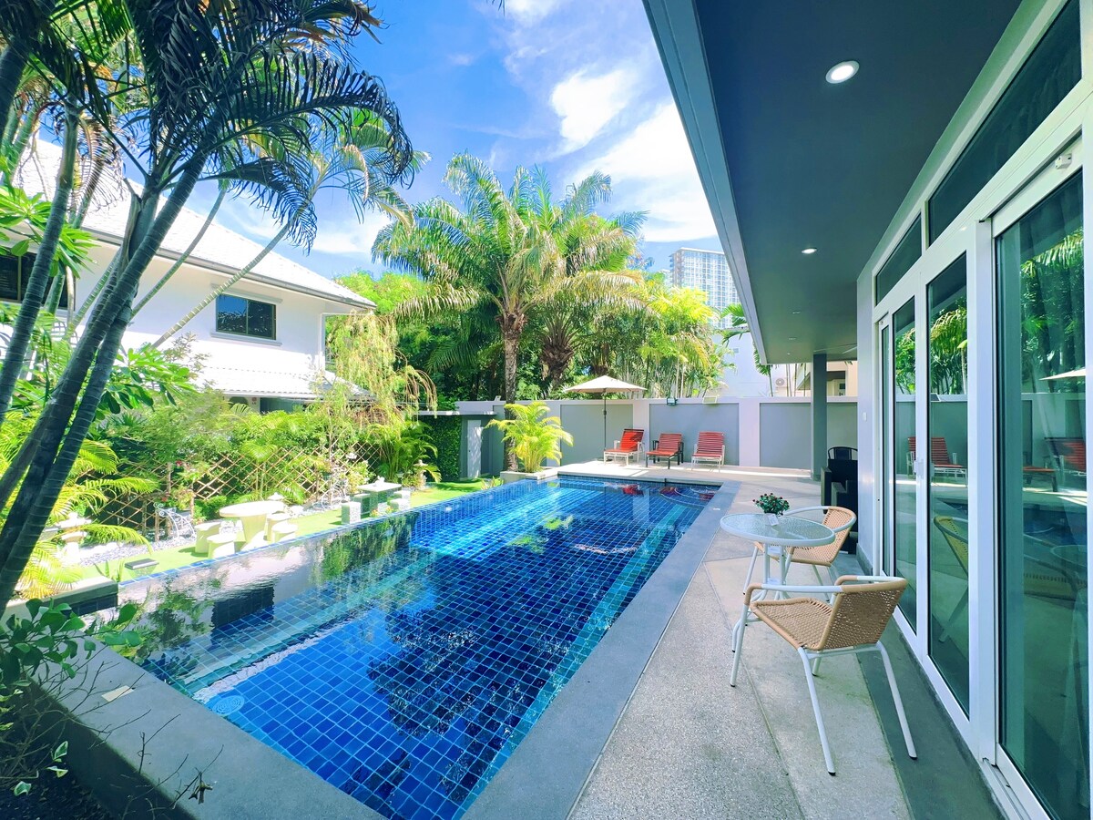 Magnifik modern och fullt utrustad villa med sin privata simbassäng. Består av 2 sovrum och ett badrum. Perfekt till 4 personer. Fullt utrustat kök, mikrovågsugn. Privat, höghastighets och gratis Wi-Fi. Gratis parkering framför villan. Runt byn alla bekvämligheter, 5 minuter från stranden och 10 minuter med taxi från centrum och Walking Street. Dessutom en stor gemensam pool i byn.