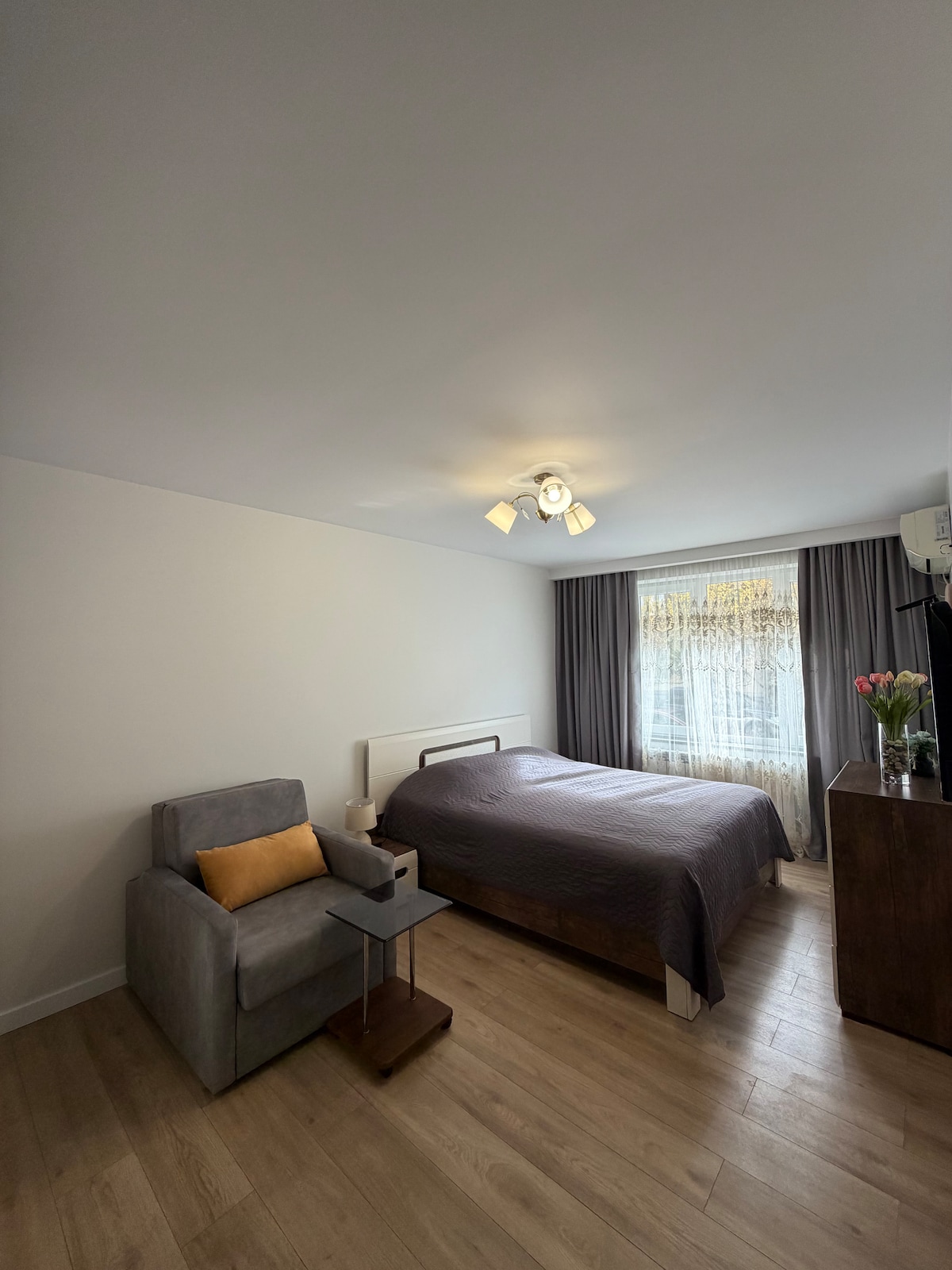 Detta är en stor bekväm lägenhet i ett höghuskomplex "Yalcin Star", på 27:e våningen. Via Batumi är en perfekt tillflyktsort för familjer och för en grupp vänner. Som är ute efter avkoppling och vacker utsikt. Lägenheten är fullt utrustad för en bekväm vistelse. Balkongen erbjuder en vacker utsikt över staden och havet, där du kan njuta av solnedgången med ett glas vin.