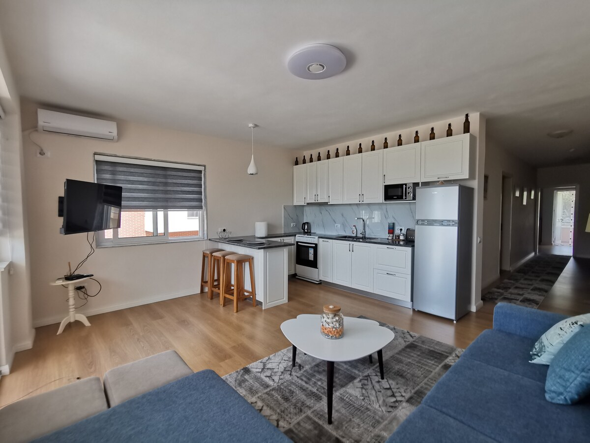Välkommen till ✨Moonchild Suites✨, din eleganta tillflyktsort i Durrës! Denna eleganta och fullt utrustade lägenhet ligger på Iliria Beach, bara 50 meter från havet och en kort promenad från det ikoniska Hotel Adriatik, och är perfekt för en avkopplande semester vid kusten. Designad med komfort och stil i åtanke, har den en ljus modern inredning, en rymlig privat balkong och allt du behöver för en perfekt vistelse. Perfekt för par, familjer eller distansarbetare som vill koppla av, utforska eller arbeta vid havet.