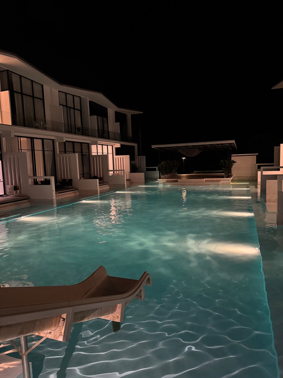 Fräsch 55 kvm 1-säng (INTE Studio!). 💤Sovplats för 3: King-säng (Ortho) + Lädersoffa. Premium 100 % bomullslakan. ⚡Teknik: Frontmatad tvättmaskin/torktumlare, diskmaskin, 2 stora smarta TV-apparater, 2 AC. 🏃Aktiv: Gym, Tennis, Streetball, 2 Pools, känd Mountain Hiking Trail. 📍Plats: 1 minut till Sea Shore (SUP-plats) och Jack's (Stylish Cafe). Gå till Fisherman's. ✨Utsikt: Stor balkong med bergsutsikt. Ljudisolerade fönster. 🚀Snabb WiFi via fiber. 🅿️Gratis parkering. 👮Säkerhet dygnet runt. 🌴Lyxig resort. Tyst. Inget flygplansbuller! 🔇✈️ Toppställe! 🏆