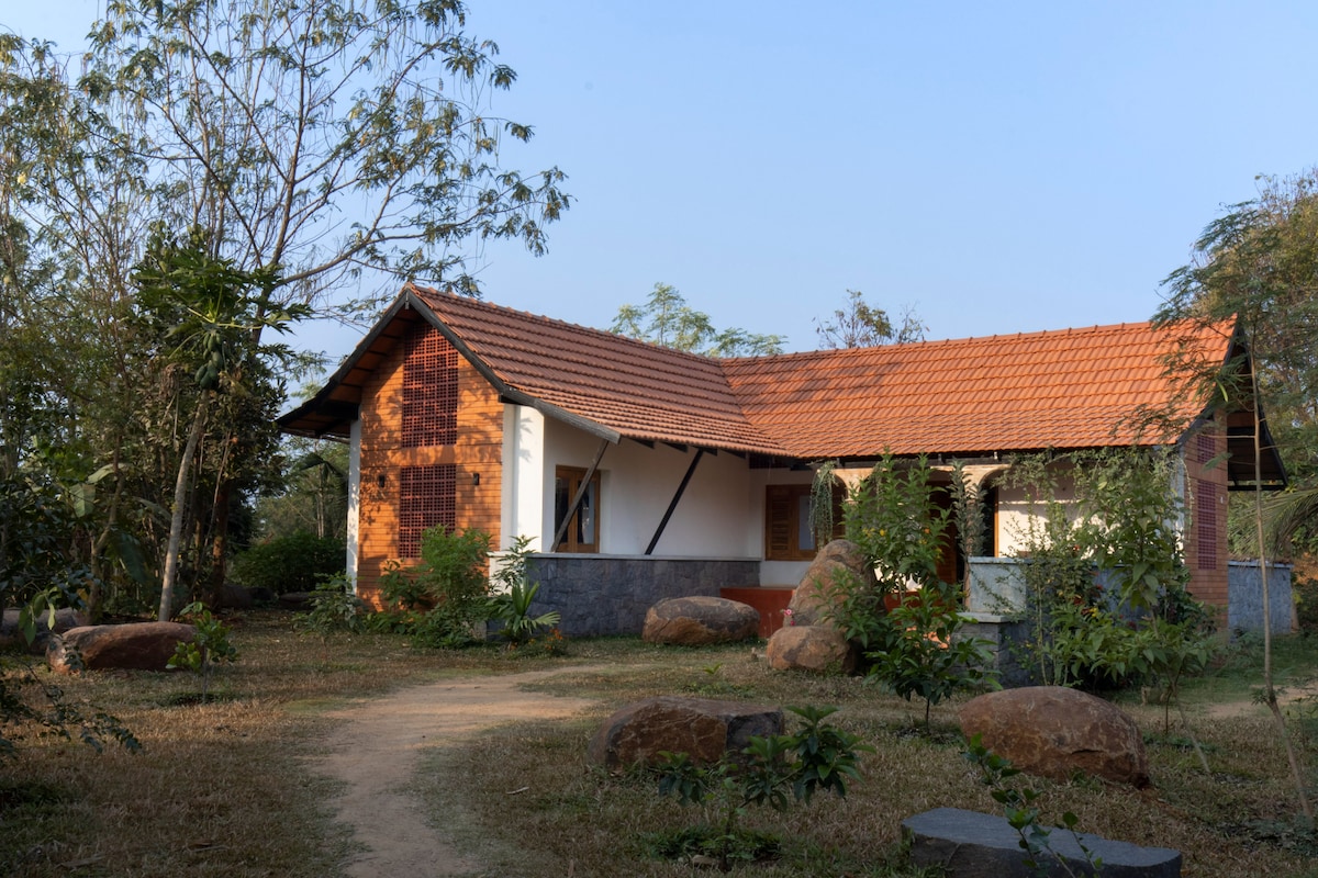 Fly till vår koldioxidnegativa bondgård som ligger mellan Bangalore och Hosur. Andas in den friska luften bland ekologiska gårdar och solkraftsdrivna bekvämligheter. Utforska trädgårdens medicinalväxter, plocka färska grönsaker och varva ner vid vattnet. Närliggande städer erbjuder bekväma shoppingalternativ. Perfekt för miljömedvetna tillflyktsorter som söker lugn och hållbarhet. Även utrustad med en privat väderstation, vars länk kommer att skickas till dig vid bokning för att spåra väder i realtid på platsen.