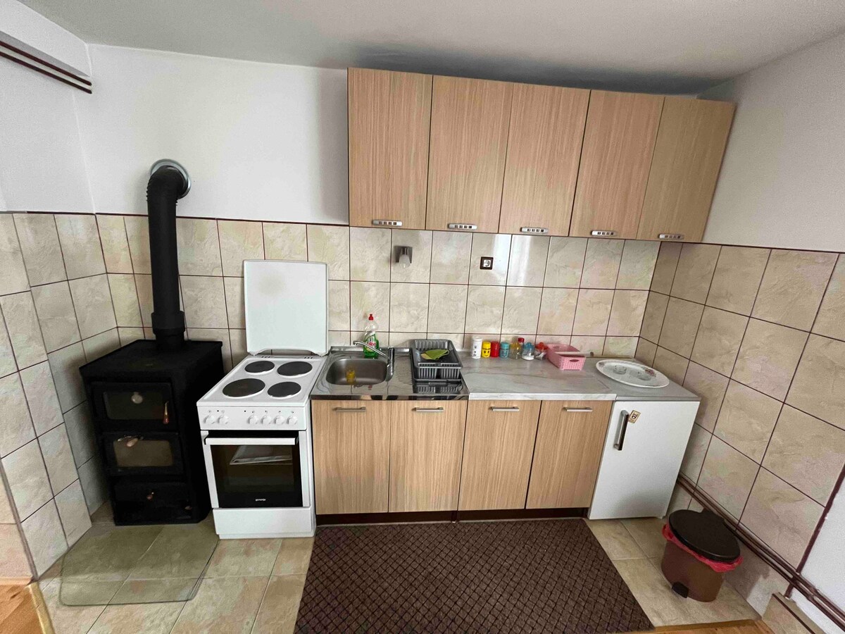 Lägenheten ligger 300 m från busstationen. Boendet ligger 3 km från Black Lake, 1 km från de finaste restaurangerna och shoppingmarknaderna. Tara canyon ligger 20 km från lägenheten. Gratis privat parkering tillhandahålls. Det är utrustat med allt du behöver: Tvättmaskin, elektrisk spis, handdukar, tvål... Dessutom har köket allt för dig om du vill laga mat eller förbereda någon annan typ av måltider. Under kalla dagar slår vi på centralvärme eller så kan du bränna en eld själv i vedspis.
