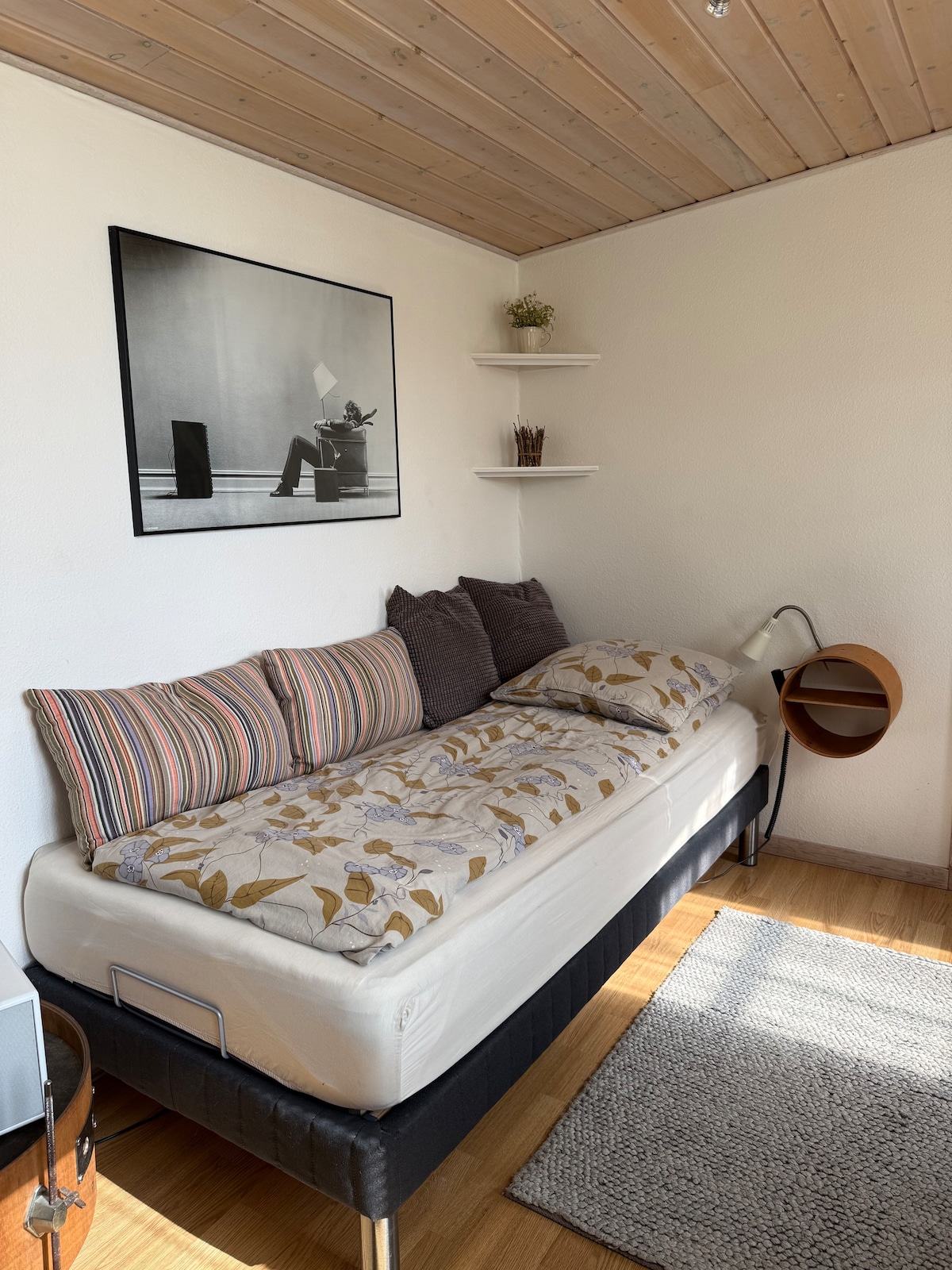 Rum på cirka 12 m² i ett lugnt område, 0,6 miles från Koldings centrum och 0,9 miles från tågstationen. Rummet ligger i en förlängning av huset med egen ingång. Det finns två enkelsängar, ett bord med två barstolar, en bokhylla, en fåtölj och ett litet skåp. Delat badrum och toalett i samma byggnad som rummet, men OBSERVERA att du måste gå ut för att använda toaletten/duschen. Tillgång till sluten innergård. Inte lämpligt för personer med allergier, eftersom jag har katt och hund. Rökning är EJ tillåten någonstans inomhus. Gäster ej tillåtna.