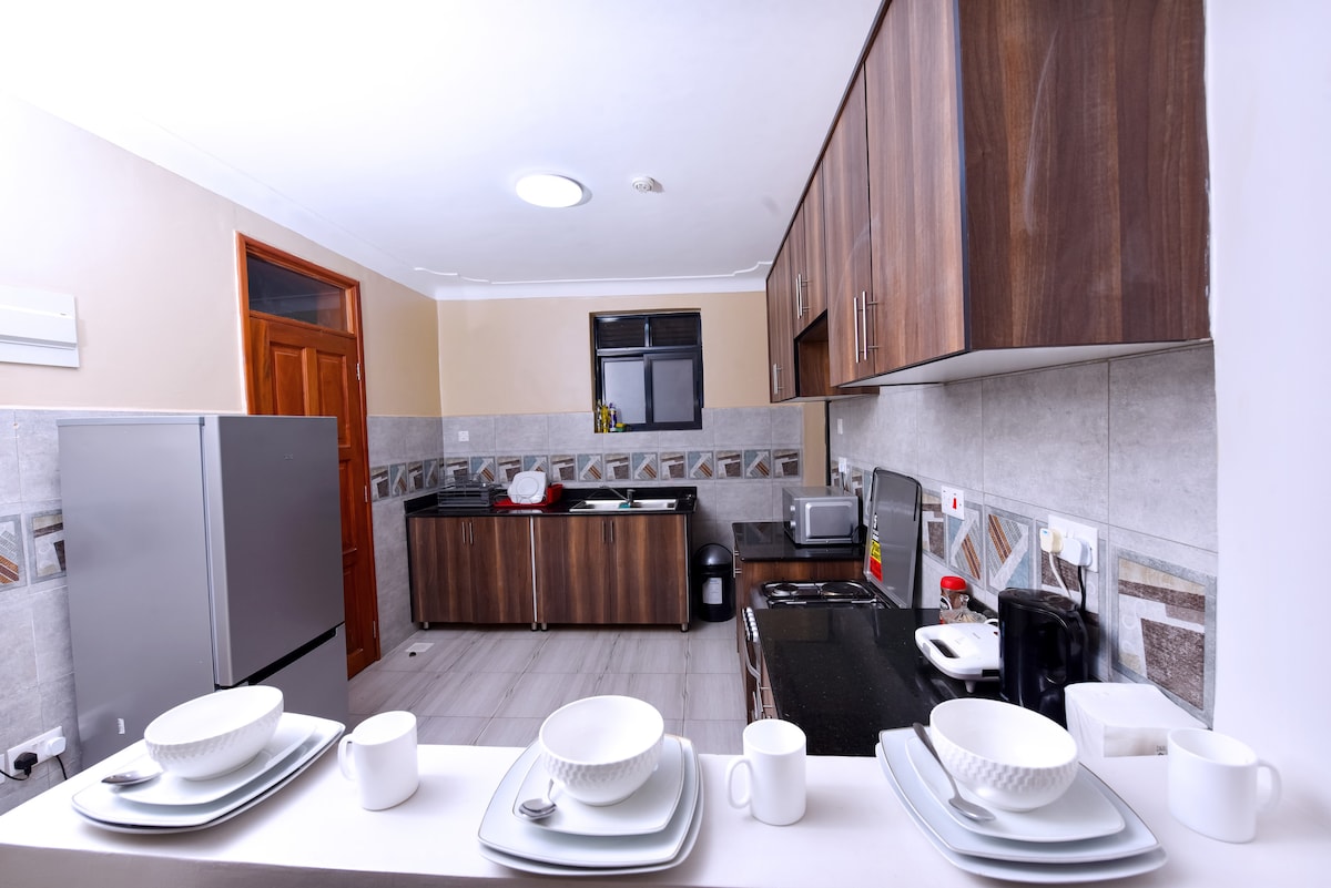 An opulent home for family and group trips. The 3 bedroomed apartments has 2 spacious bathrooms, spa showers, sitting room, 2 balconies, full kitchen, washing machine, cable tv, unlimited wifi (Mtn fibre) & mini bar. Nestled steps away from capital shoppers mall various restaurants, kids world water park, 15 minutes drive to Acacia mall and Kampala city centre. The modern amenities and contemporary decor brings a relaxing experience anyone can enjoy. Explore what Gabs accommodations has to offer