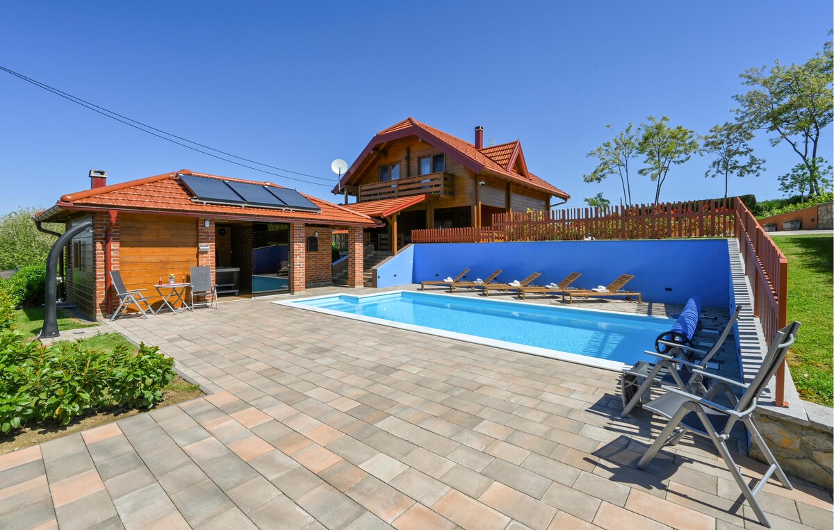 Upptäck lugn och ro i vårt vackra semesterhus på landet, inbäddat mitt i ett frodigt landskap. Perfekt för avkopplande retreats, familjevistelser eller utforskning av naturens skönhet längs floden Drava och nära gamla staden Varazdin. Funktioner: 3 bekväma sovrum och 4 badrum Utomhuspool Rymlig uteplats Bubbelpool, bastu och träningsutrustning Biljardbord, Futsie-bord, Bordtennis Gratis Wi-Fi Utomhusrotisseri Romantisk trädgård med blommor Din perfekta semester på landsbygden väntar!
