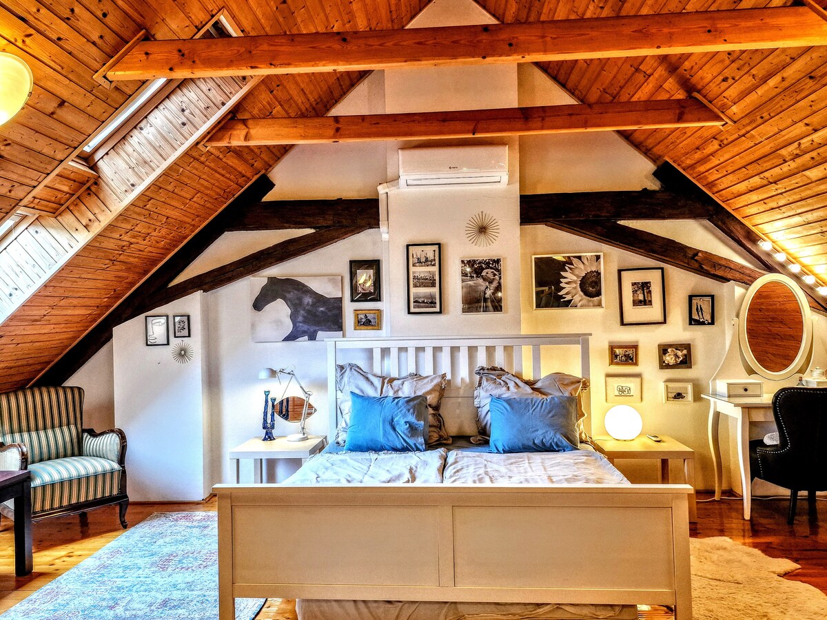 Kom och glöm alla dina bekymmer på detta fridfulla ställe! Ett vackert 140 m2 vindsvåning i en bondgård 4 km från Balatons strand i en lugn miljö. Lägenheten på bottenvåningen har ett fullt utrustat kök, tvättmaskin, en dubbelsäng (180 cm x 200 cm) dubbelsäng, två bäddsoffor vid behov, två luftkonditioneringar för att justera det klimat du behöver, en 55" TV, ett skrivbord för fjärrarbete, ett stort överdimensionerat badkar perfekt för par och massor av ljus med sina 15 fönster.
