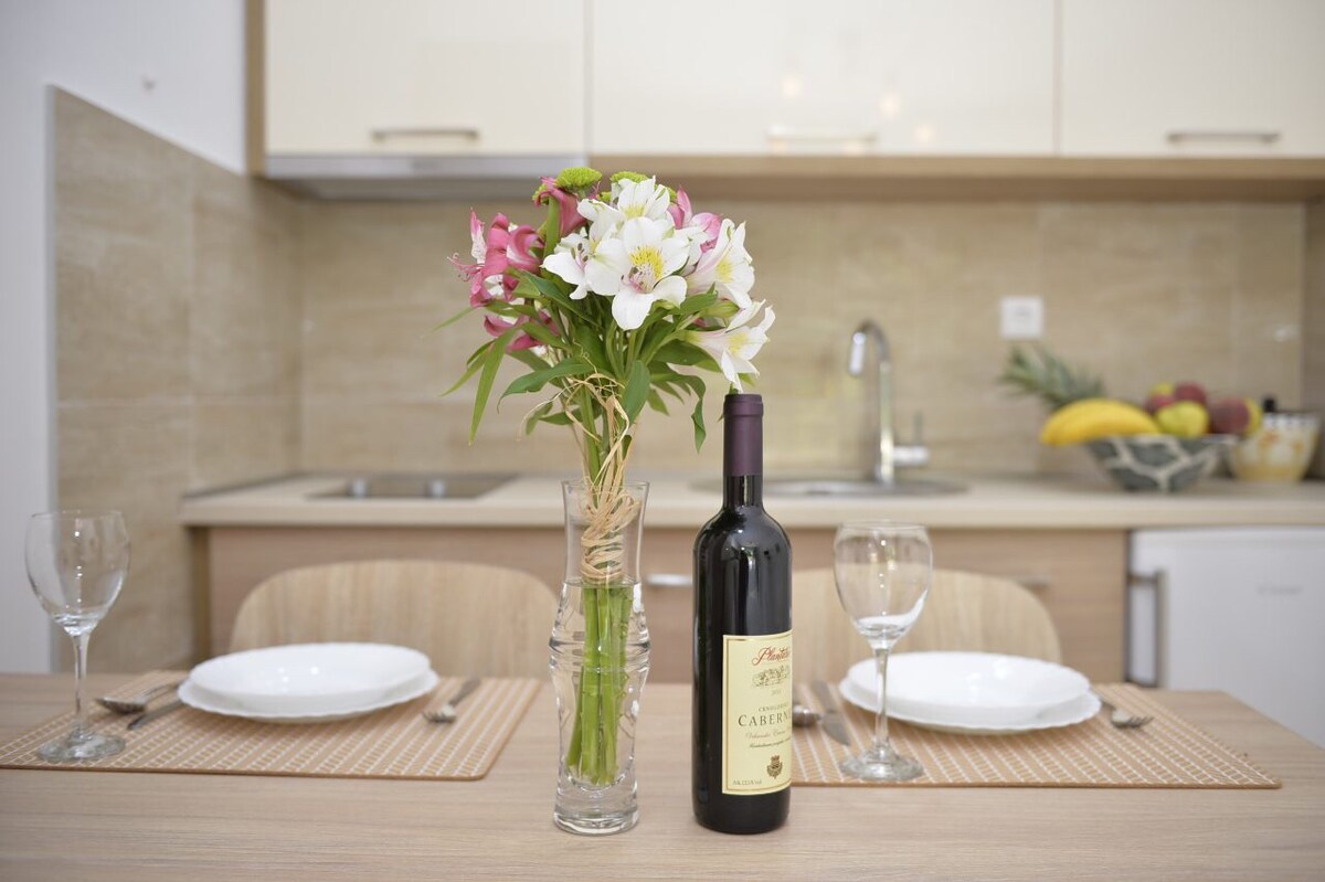 Dessa helt nya lägenheter gjordes i juli 2017 och har allt gäster kan behöva för en perfekt semester.Läget är stort.Lägenheterna är bara 10 minuters långsam promenad från gamla stan i Kotor och bara 2 minuters promenad från havet.Det finns en privat parkering framför och en privat pool för gäster. Wi fi är stark och gästerna kan dricka vin på en vacker privat terrass framför lägenheten.