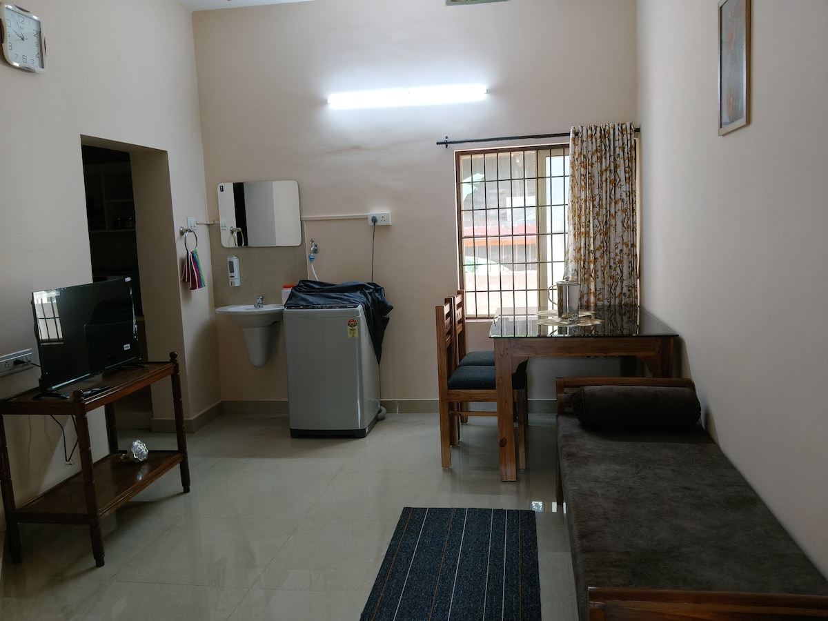 Välkommen till vårt mysiga 1BHK-boende i Ukkadam, Coimbatore — din perfekta budgetvistelse! Boendet är rent, bekvämt och perfekt för ensamresenärer eller små familjer. Njut av luftkonditionering, gratis WiFi, dricksvatten dygnet runt, anslutet badrum, parkering för en liten bil och CCTV-säkerhet. Mys på den öppna terrassen eller i vardagsrummet. Beläget nära marknader, restauranger och transportnav, det är ett fridfullt hem med alla väsentligheter för en bekväm vistelse. Husdjur tillåtet Tvättservice tillgänglig på begäran