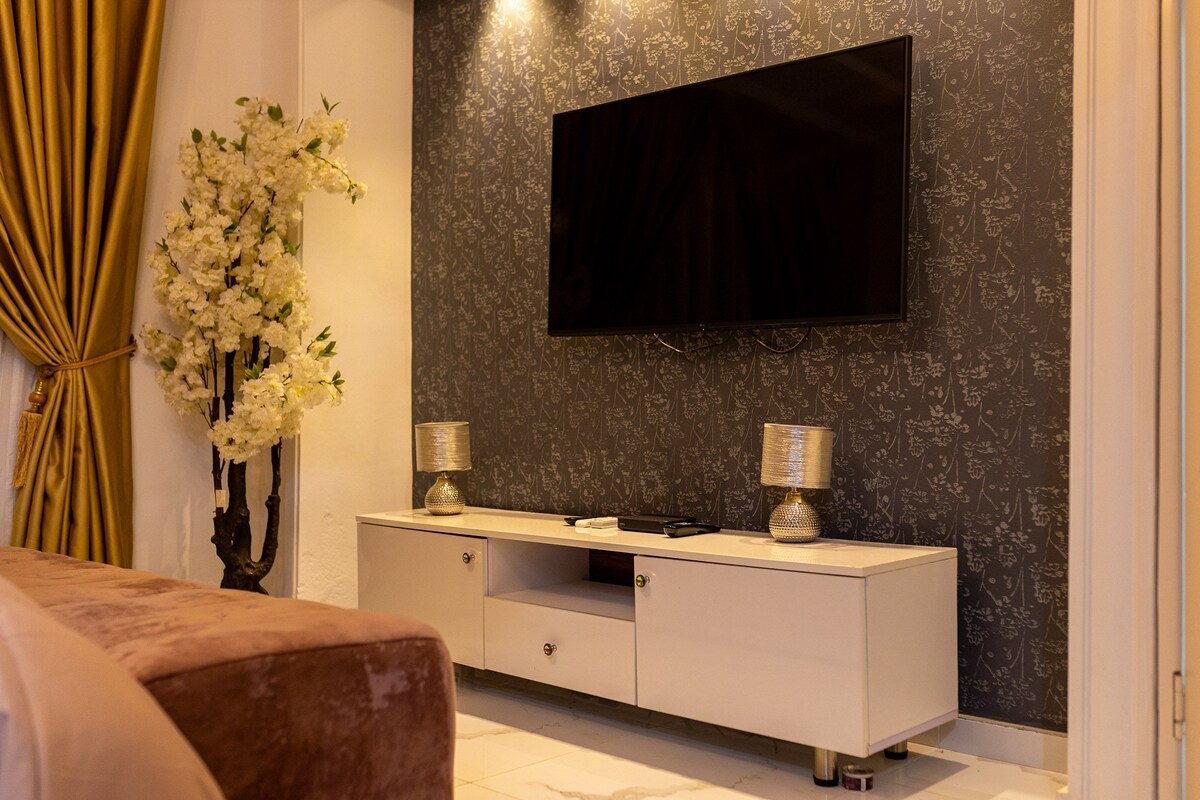 Detta är en fullt möblerad lägenhet med ett sovrum och ett vardagsrum. Platsen är centralt belägen ca. 25 minuter från Kototoka International Airport och 10-15 minuter från Accra Mall. Platsen är möblerad med en bekväm king-size-madrass, två luftkonditioneringar, höghastighets WIFI-internet, ett fullt fungerande kök, ett dedikerat arbetsutrymme och en tvättrum Borteyman Stadium (7 minuters promenad) China Mall (8,1 km) Tema Hospital (9 km) Restauranger/butiker – gångavstånd