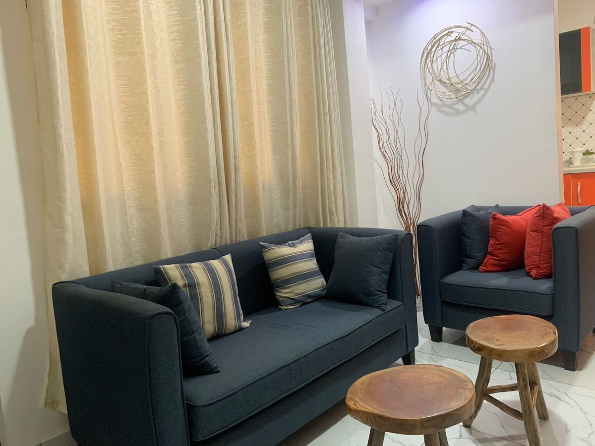 Välkommen till ditt lyxiga hem utanför hemmet. Denna eleganta lägenhet med 2 sovrum erbjuder en varm, hemtrevlig känsla med exklusiva ytor, pålitligt WiFi, reservkraft dygnet runt och tillgång till ett privat gym. Inbäddat i ett säkert, lugnt inhägnat samhälle -jak Royale Apartments. Det är den perfekta blandningen av komfort, klass och bekvämlighet.