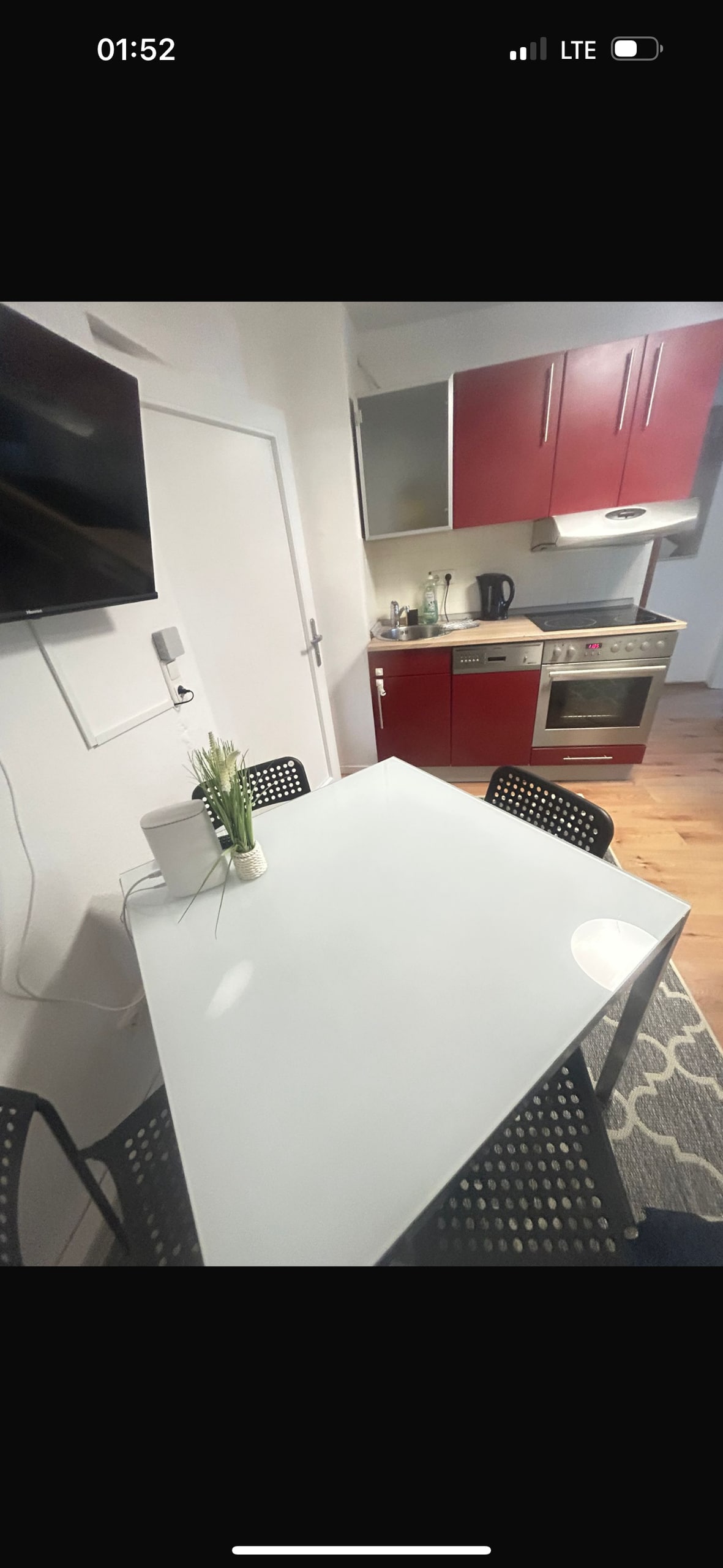 Smakfullt inredda, mycket ljusa, rymliga vardagsrum/matplats, TV, DVD-spelare, Wi-Fi, stereo, separat kök fullt utrustat inkl. diskmaskin, modernt badrum med dusch i golvnivå, sovrum avskilt med skjutdörr, dubbelsäng, tvättmaskin i källaren, sydvästterrass, parkeringsplats framför huset, S-Bahn på gångavstånd (8 min.), ekologisk stormarknad och alla viktiga butiker inom 2 - 5 minuters promenad.