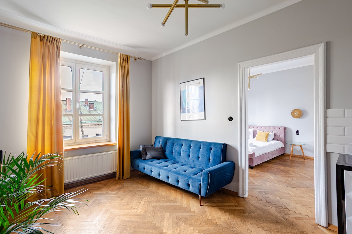 Upplev charmigt i Krakow i min underbara lägenhet! Beläget i hjärtat av Gamla stan, är det bara 3 minuters promenad till huvudtorget, och alla attraktioner ligger inom gångavstånd. Lägenheten renoverades nyligen med stor uppmärksamhet för detaljer och har en blandning av Krakows historiska charm, modern design och en touch av lyx. Designad av en lokal Krakow-designer, är det den perfekta basen för att utforska staden i stil och komfort!