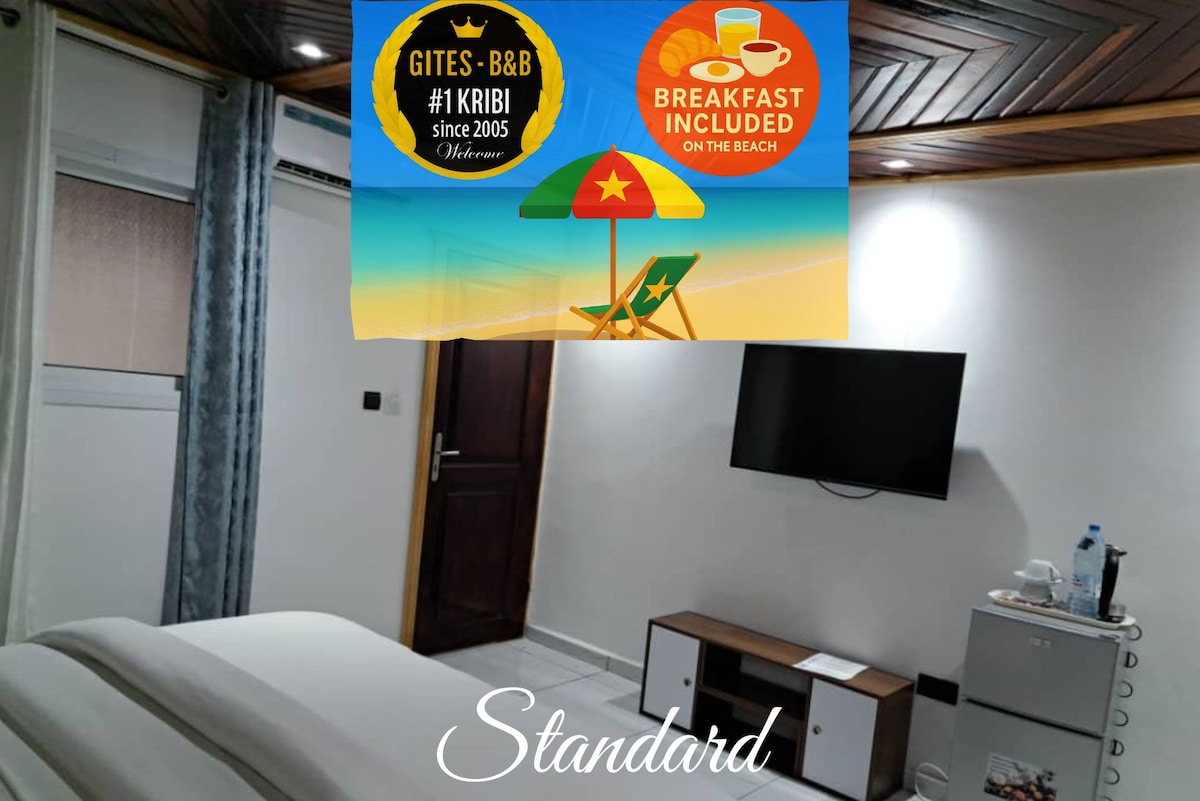 Upptäck vårt fullt luftkonditionerade och möblerade fristående hus, inbäddat på en omfattande privat fastighet med direkt tillgång till en lugn strand. Detta boende är perfekt för familjer, par, affärsresenärer och grupper av vänner och kombinerar modern komfort och traditionell afrikansk inredning. Det är det perfekta valet för avkopplande och exotiska vistelser eller semester i Kribi.