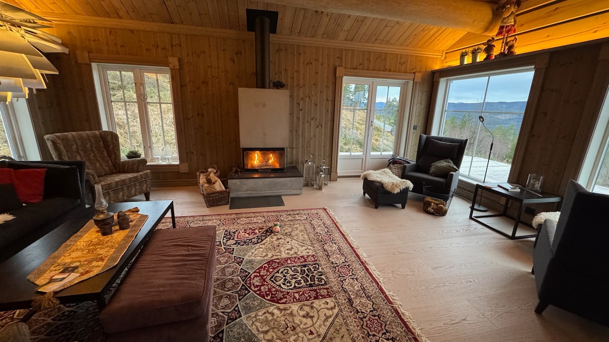 Rymlig familjehytte med utsikt över Norefjell
