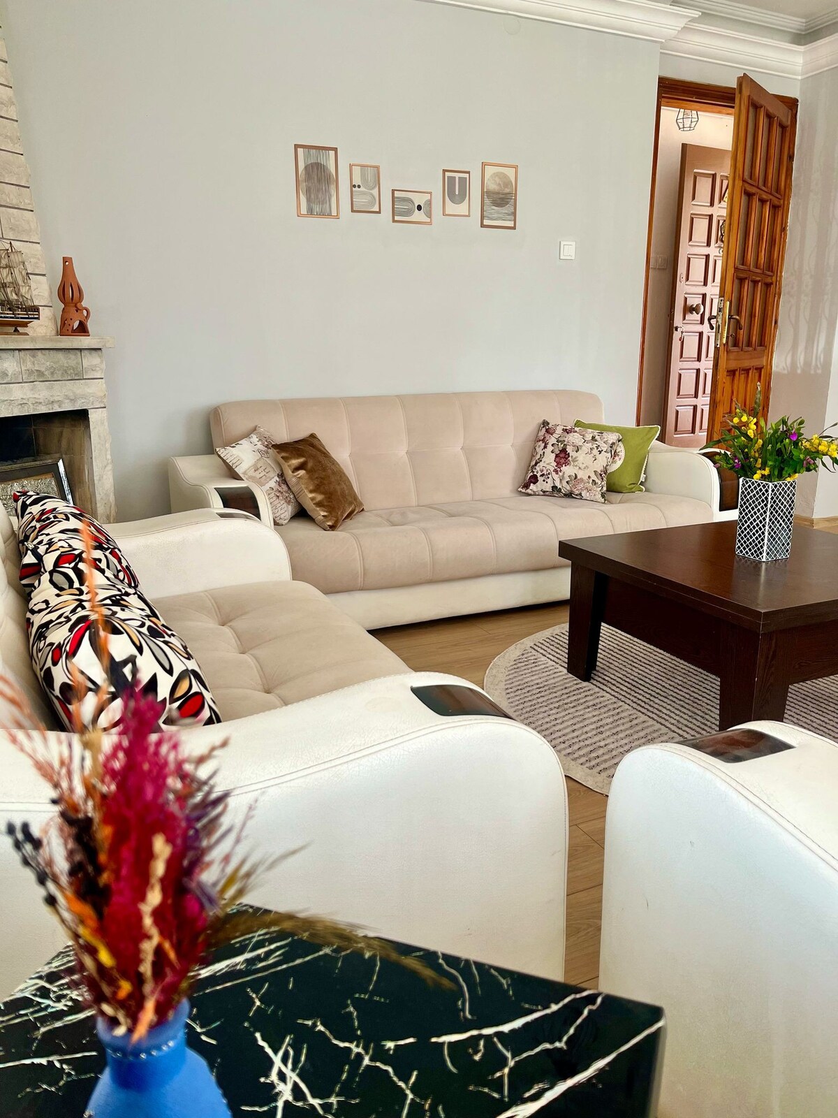 Stor lägenhet med 3 rum, 1 vardagsrum, 2 stora balkonger mitt i Ayvalik Sarımsaklı, 200 meter gångavstånd från stranden. Det finns inga vattenproblem i huset där familjer kan bo bekvämt. Höghastighets Wi-Fi. Beläget på 1: a våningen i 4-våningsbyggnaden. 2 sovrum har dubbelsängar och garderober, och 1 rum har 3 enkelsängar och garderober. Några minuters promenad från alla livsmedelsbutiker, marknadsplats, lägenheten har diskmaskin,tvättmaskin, inverter luftkonditionering, TV med satellitmottagare. Jag talar flytande engelska.