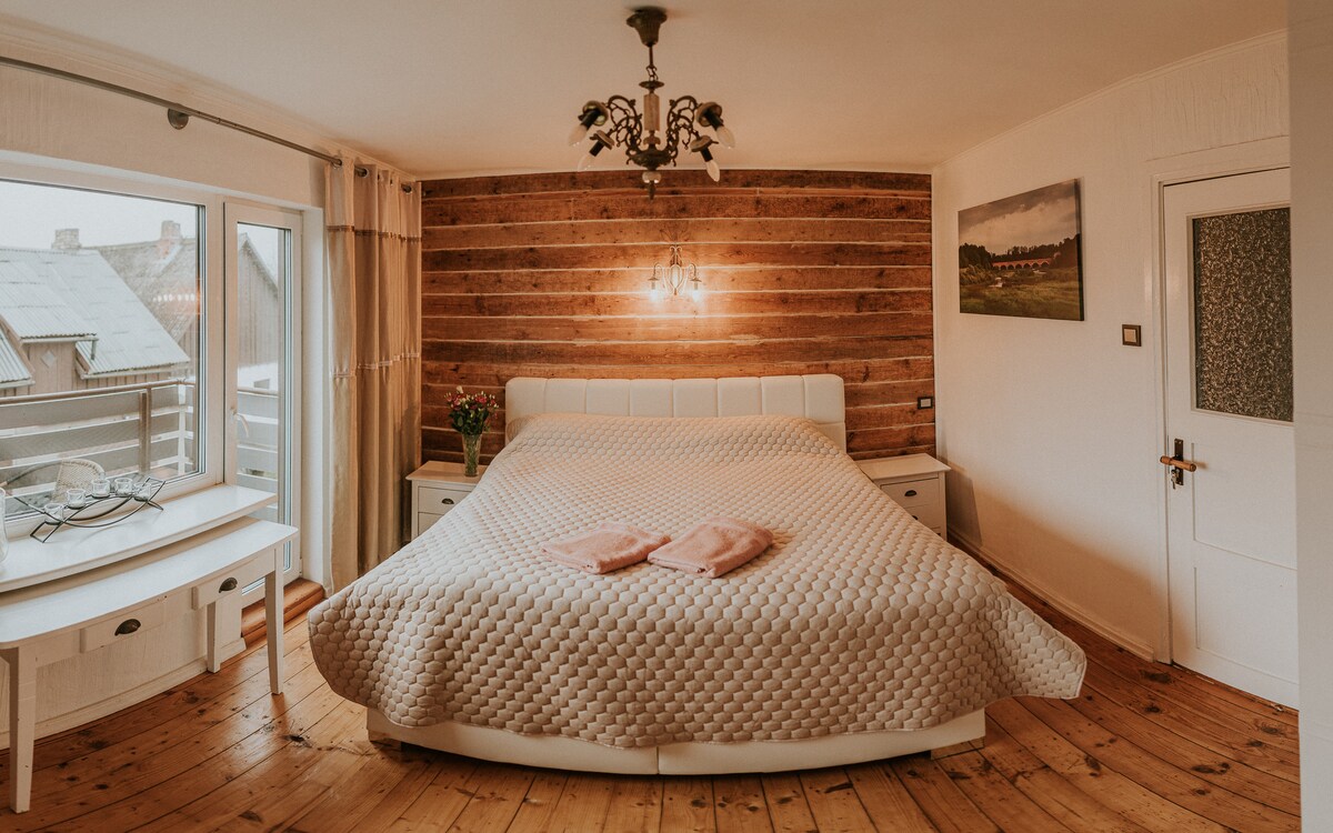 Njut av romantiska stunder i vår stuga, några km från centrum av Kuldiga. Privat bastu, terrass med grill – perfekta stunder för två. Bubbelpool utomhus € 60 tillgänglig mot en extra avgift. I närheten finns en vandringsled längs floden Venta, som tar dig till det bredaste vattenfallet i Europa. Perfekt ställe att koppla av från stadens liv och rörelse, föryngra dig och njuta av varandras samhälle.