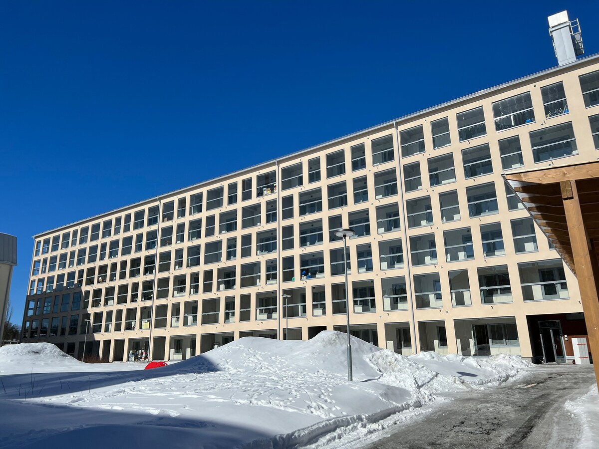 Ljus, mysig triangel på 13: e våningen i stationens höghus i centrum, med utsikt över stadens tak. Här sover du gott, även om tåg- och busstationen ligger på gården. I samma område finns ett parkeringsgarage med gratis parkering för 1 bil och laddningsmöjligheter för elbilar. På gården, K-Supermarket, lunchrestaurang, Barots snabb restaurang + andra tjänster. Hamnen och marknadsområdet ligger en kort promenad bort. Sängkläder tillhandahålls.