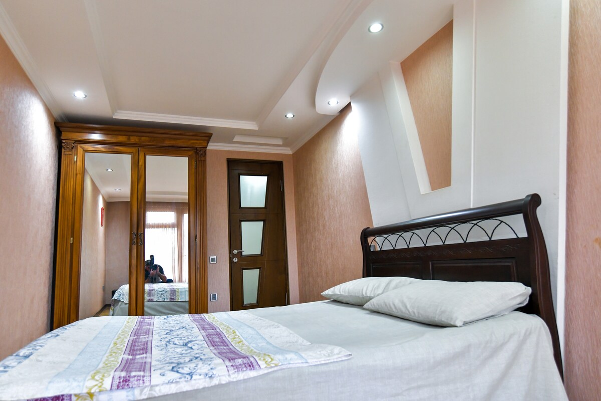 Mysig modern lägenhet i centrala Kutaisi, på Gamakhurdia Street 35. Nyrenoverad 1-rumslägenhet med värme, luftkonditionering, Wi-Fi och en solig balkong. Butiker och apotek på nedervåningen, kollektivtrafik i närheten. Perfekt för par eller långtidsvistelser. 400 USD/månad eller 40 USD/natt.