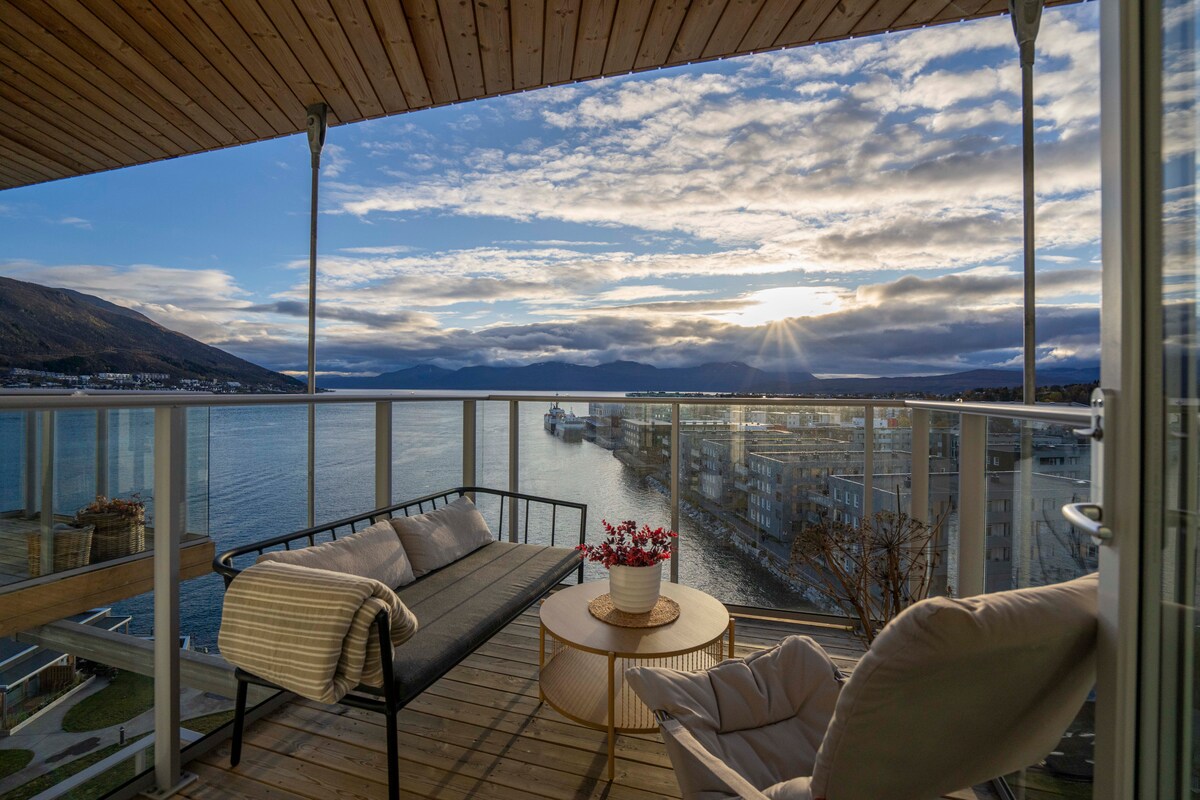Hög standard, modern lägenhet med fantastisk havs-, bergs- och stadsutsikt. Njut av norrsken eller midnattssolen från lägenhetsfönstret eller terrassen. Härifrån har du enkel tillgång till både stadslivet, havet och bergen. Lägenheten ligger 10-15 minuters bilresa från flygplatsen.