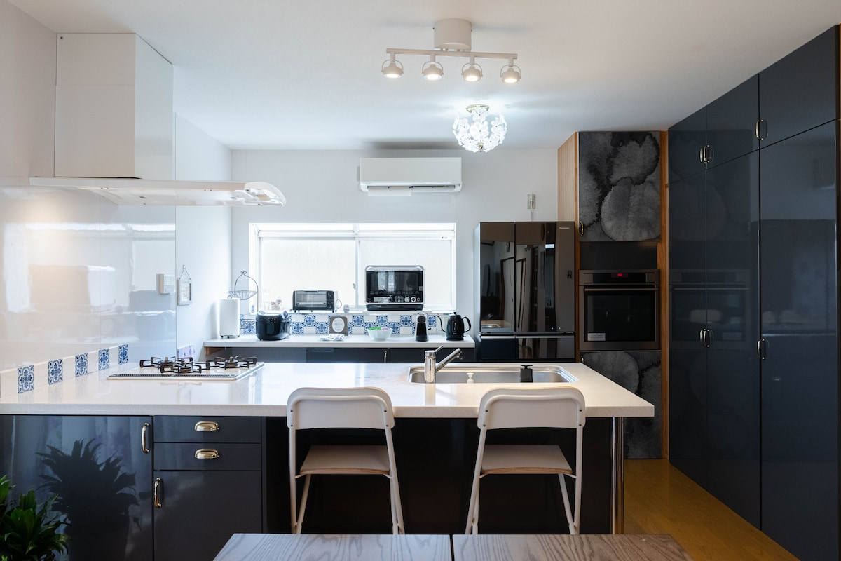 Fristående hus, plats för 9 personer, bekvämt att ta sig runt, gratis parkering, EV-laddning, stort köpcentrum i närheten, 10 minuter till motorvägen, 15 minuter till världsarv, populärt ställe för att se körsbärsblom