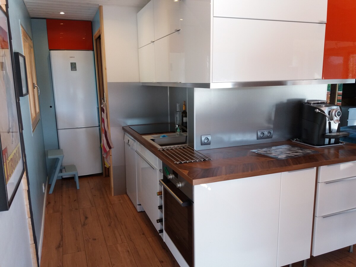 Letar du efter en unik stund av avkoppling i ett elegant boende och tips under din vistelse i Aix les Bains? Vi erbjuder "Le Nordique", en STOR STUDIO på 40 m² med ett PRIVAT VARMT NORDISKT BAD med HYDROMASSAGESTRÅLAR och en BASTU. Det ligger på andra och översta våningen i ett nytt hus som vi njöt av att föreställa oss, bygga och landskapsarkitektur för att uppleva minnesvärda stunder i Aix les Bains.