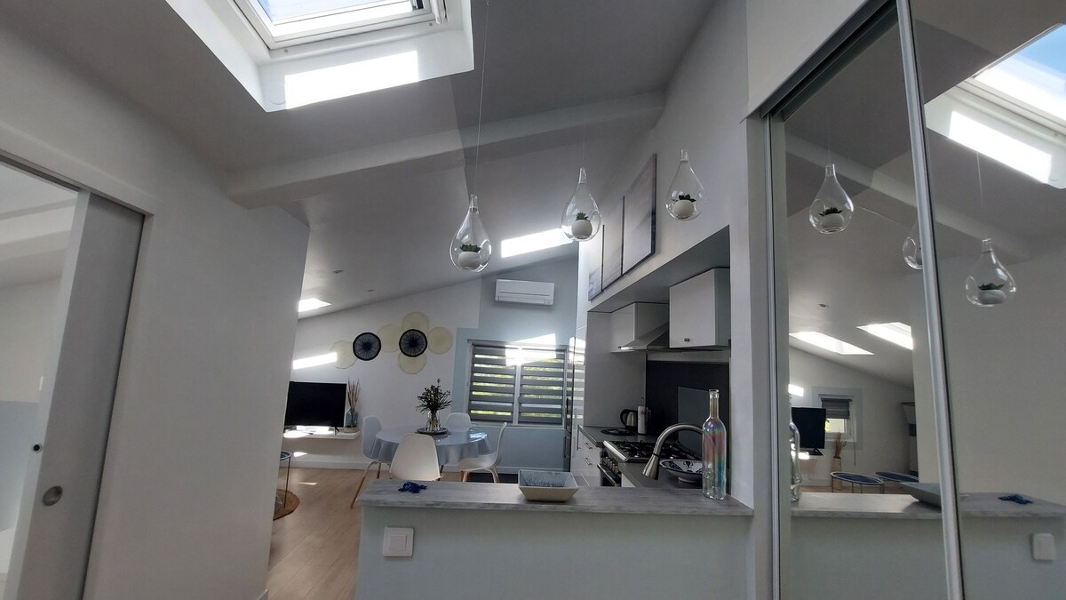 Inbäddat mot sluttningen med imponerande och fri utsikt över vingårdarna är vi glada att välkomna dig till Ness Cottage. En vacker, mysig och bekväm 55 m² svit, elegant inredd och full av karaktär, inbäddad i en lugn landsbygdsmiljö med en pool. Detta boende, betygsatt 5 ⭐️ för möblerat boende, har ett mysigt sovrum med eget omklädningsrum, ett stort vardagsrum, ett kök och ett badrum med toalett. Paradiset finns, det är här! 🏞️🐠🌅