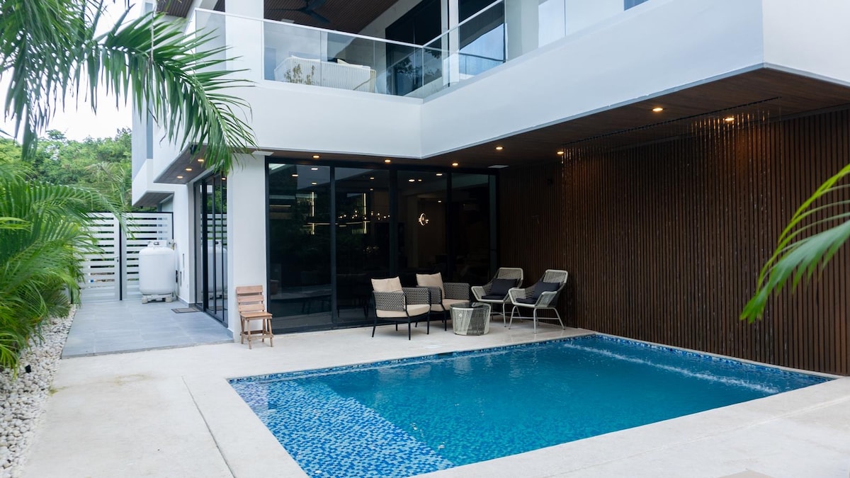 🌴✨ Upplev lyx i Playa Nueva Romana. Njut av en privat strand, strandklubb, 18-håls golfbana, restauranger, gym, idrottsplaner och säkerhet dygnet runt. Vår villa erbjuder en privat pool, stora utrymmen och en perfekt terrass för oförglömliga solnedgångar. Perfekt för familjer eller resor med vänner. Boka och upplev paradiset! 🌊🏖️