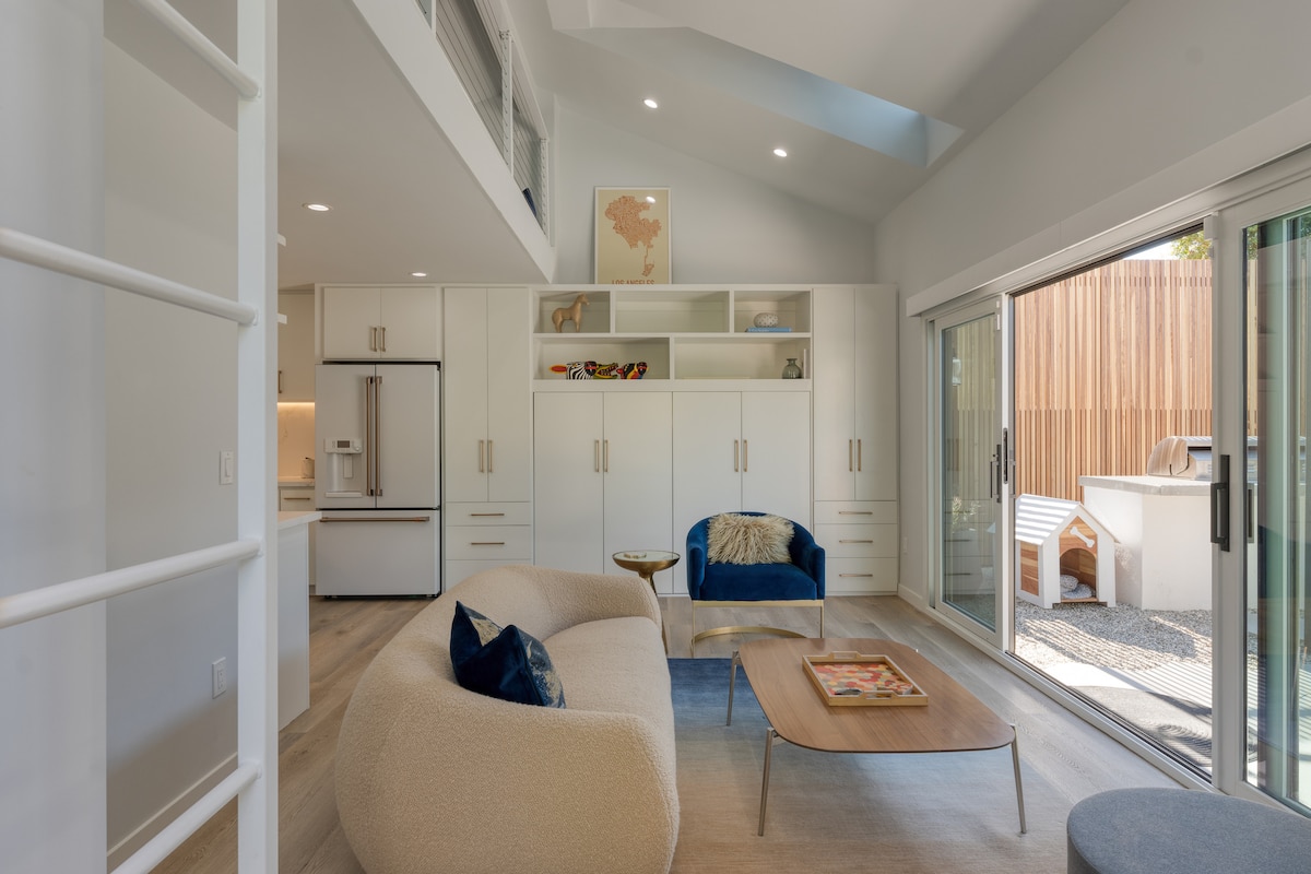 Detta 1 sovrum/1 badrum hus- 50 min till SoFi Stadium. Byggd i början av 1940-talet, dess inredning är en nick till den tidens tidlösa charm. Mörkläggningsgardiner förbättrar sovplatserna för en lugn natts sömn. Dryckesbaren har gott om skåp, en accentvägg med backsplash och unika öppna live edge-hyllor, tillverkade av det gamla avokadoträdet som en gång prydde uteplatsen. Uteplatsen har sedan dess förvandlats med utemöbler, vilket gör den perfekt för lugna stunder utomhus.