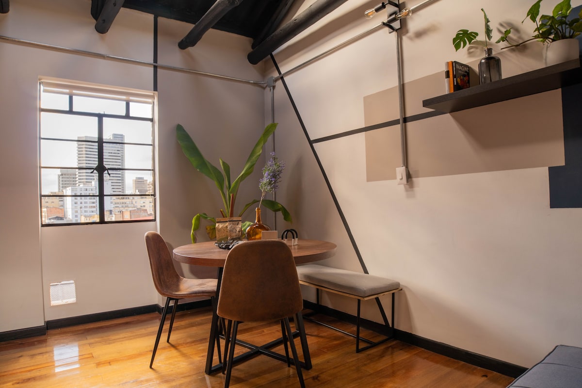 Välkommen till vår eleganta vindsvåning i hjärtat av Bogotás historiska centrum La Candelaria. Njut av en bekväm och modern vistelse med allt du behöver: snabbt Wi-Fi, ett fullt utrustat kök, en king size-säng och en mysig bäddsoffa. Som en bonus kommer du att bjudas in att uppleva Tejo, ett traditionellt colombianskt spel som är roligt, socialt och unikt lokalt. Perfekt för par, distansarbetare och nyfikna resenärer. I byggnaden: Takterrass, restaurang, stormarknad, säkerhet dygnet runt, gym och bagageförvaring.