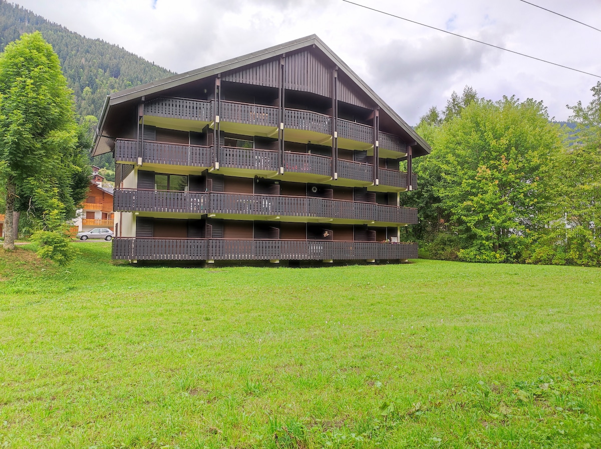 Välkommen till vår 2-rumslägenhet i bergen som är idealisk för 4 personer, en 2-minuters bilresa från Panthiaz-liftstolen, som förbinder semesterorten La Chapelle d'Abondance med Portes du Soleil (Chatel - Avoriaz - Morzine...). Dessutom avgår skyttelbussar från Chapelle d'Abondance för att ta dig direkt till Chatel på mindre än 10 minuter! ⛷️ Byns centrum ligger 15 minuters promenad bort, med restauranger, ett bageri, apotek, hälsocenter och mataffär.