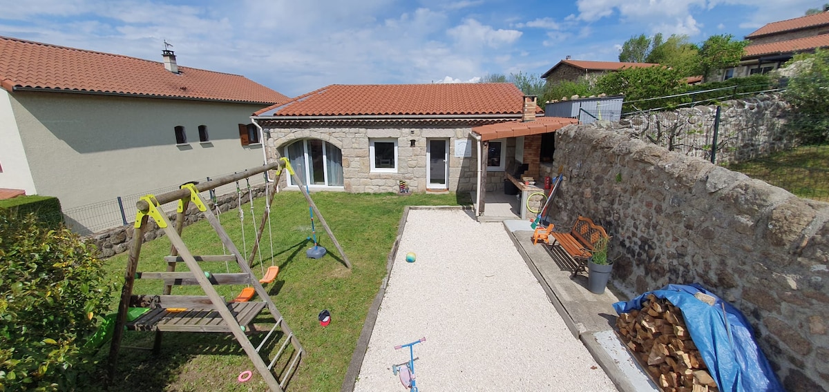 Lugnt boende inbäddat på landsbygden men bara ett stenkast från motorvägen som tar dig till St Etienne på 15 minuter, Puy-en-Velay på 40 minuter och Lyon på 1 timme. Vägen slutar i vår lilla by med 5 stenhus inklusive en gård. Boendet är helt nytt och uppvärmt med en pelletsbrännare som ger en behaglig värme när behovet uppstår. Det är fullt utrustat för en kort eller lång vistelse. Resenärer eller arbetare, var välkomna till oss!