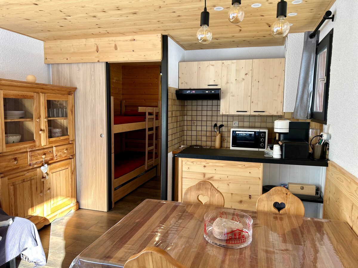 Välkommen till vår lägenhet med 2 sovrum, perfekt för en oförglömlig vistelse i bergen. Beläget på bottenvåningen erbjuder det direkt tillgång till sluttningarna i Bellevaux-la-Chèvrerie och Lake Vallon. Njut av bekvämligheten i ett sovrum med 2 enkelsängar, ett vardagsrum med bäddsoffa, ett badrum med badkar och en vacker solig terrass för att koppla av efter en dag i backarna eller efter vackra vandringar! Passar utmärkt för familjer och grupper på 4 personer.