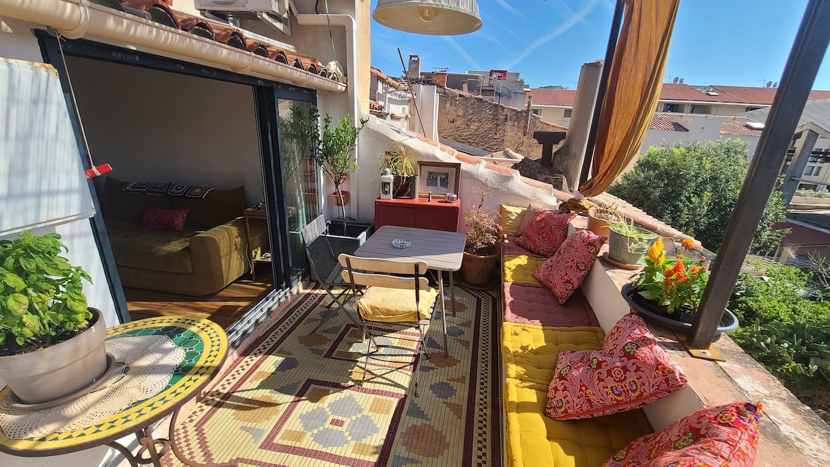 Denna renoverade studio ligger på översta våningen och erbjuder en anmärkningsvärd utsikt mellan hav och kullar, som bäst avnjuts från dess 58 kvm takterrass, ett verkligt öppet vardagsrum. Noggrann design och luftkonditionering säkerställer en bekväm vistelse, perfekt för avkoppling eller arbete. Takterrassen inbjuder dig att njuta av klimatet, från soliga frukostar till kvällar under stjärnorna. Inom gångavstånd: centrum, stränder, gammal hamn, restauranger, butiker, calanques.