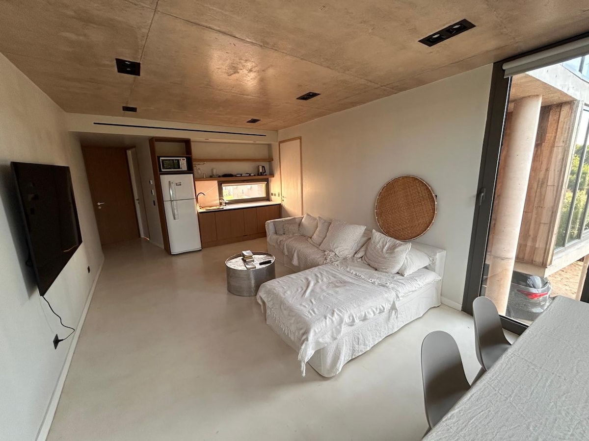 Lägenhet i ett oslagbart slutet komplex - North Beach Pinamar, vid havet: utomhuspool, sportkomplex, uppvärmd pool, gym, paddeltennisbanor, tennis, basket och fotboll. 9-håls golfbana 2 stora rum (72 m2). 42 m2 balkongterrass med grillplats. Komplett badrum, omklädningsrum. Elektroniskt lås och privat övervakning dygnet runt. WiFi, TV och luftkonditionering i båda rummen. Diskmaskin, tvättmaskin och annan köksutrustning.