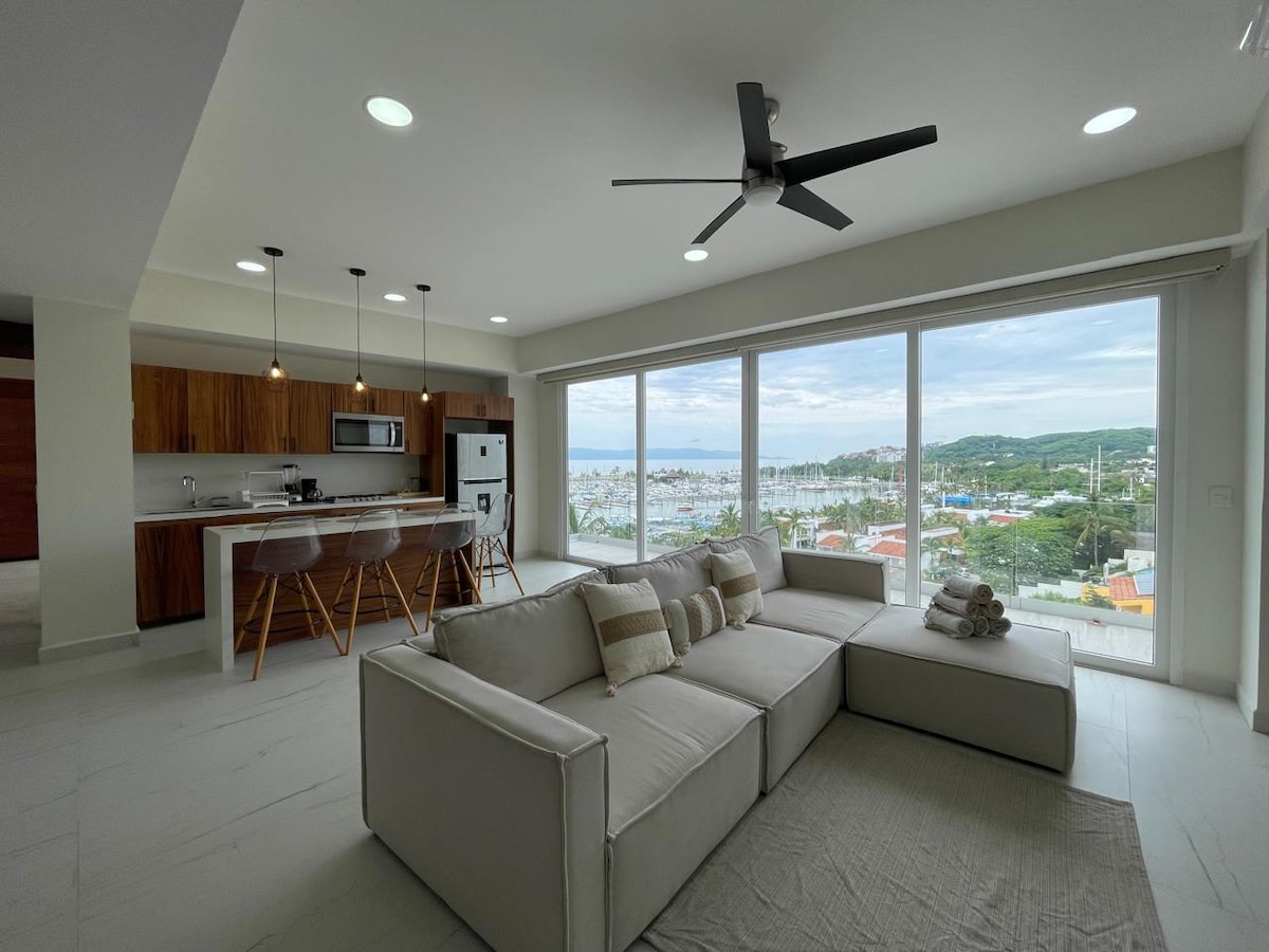 Lägenhet med ett sovrum och havsutsikt med fantastisk utsikt över bukten och lyxiga bekvämligheter med: • King-säng • Tillgång till en privat strandklubb och två pooler med en restaurang, esta a 3 minutos en automóvil • Terrass med oändlig pool och fantastisk utsikt • Gångavstånd till La Cruz de Huanacaxtle centrum, de vackraste stränderna i Nayarit • Fitnesscenter och padelplan • Fullt utrustat kök, tvättcenter, snabbt Wi-Fi och smart-TV • AC i alla rum • 24/7 säkerhet med kontrollerad åtkomst