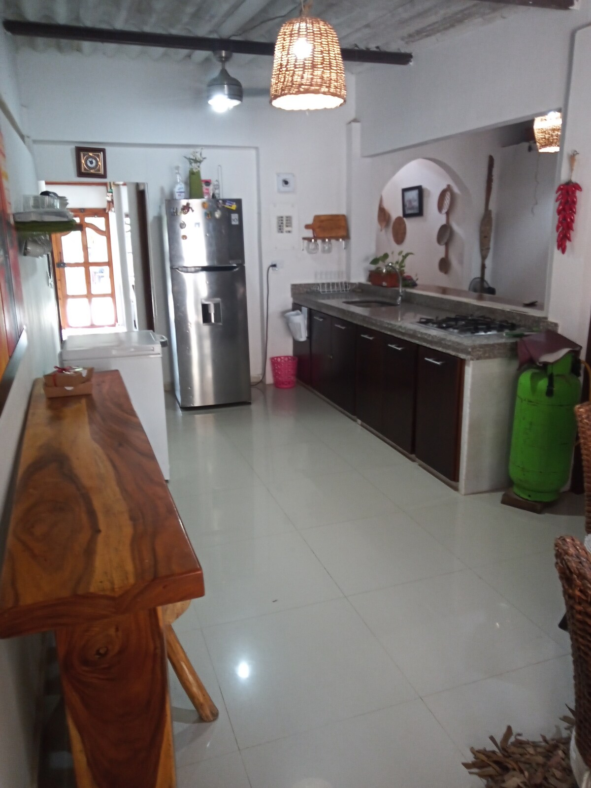 Den bästa traditionella republikanska arkitekturen och en minimalistisk stil dekoration med inslag av modernitet, tillagd till en inspirerande atmosfär av avkoppling, kommer att göra din vistelse en oförglömlig upplevelse att dela med din familj och vänner. Njut av den privata poolen omgiven av träd och trädgård. Beläget i det historiska centrum av Santa Marta, 4 kvarter från stranden och nära restauranger och stormarknader. Vi har 3 kameror som finns på uteplatsen i poolområdet.