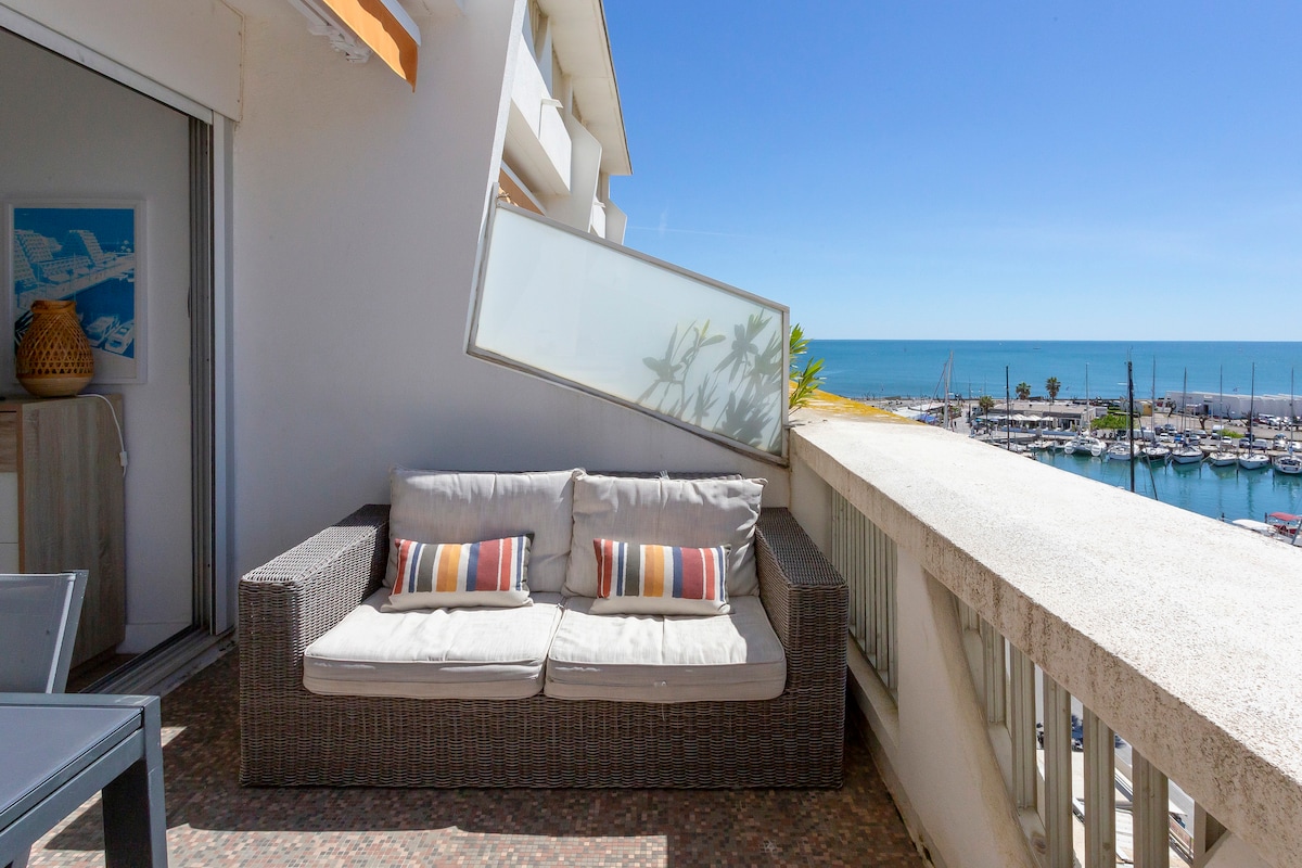 Kom och koppla av i detta vackra boende med fantastisk utsikt över Port de La Grande Motte. BelÀget i hjÀrtat av semesterorten, nÀra alla nödvÀndiga bekvÀmligheter (restauranger, barer, glassbarer, etc.) för en trevlig vistelse i sÀllskap med dina nÀra och kÀra. Du kan koppla av pÄ sanden pÄ strÀnderna som ligger bara nÄgra meter bort. En liten bit av himlen för bÄde barn och vuxna!
