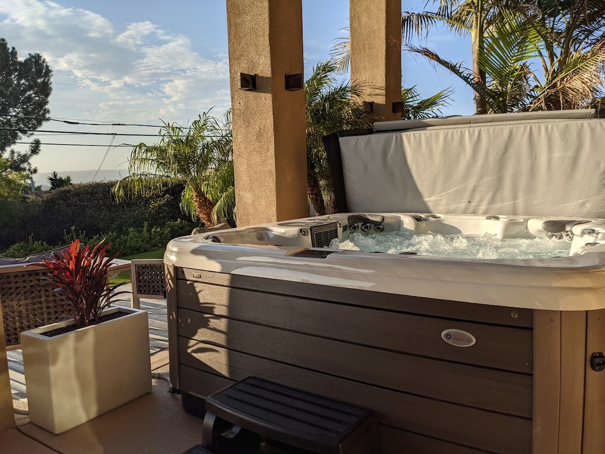 Bubbelpool och badkar, beach cruisers cyklar, utomhusdusch, utsedd parkering, utomhusgunga, bbq, A/C, spel, posturepedic sängar, mjuka och lyxiga 100 % bomullssängkläder och handdukar, skrivbord som med en knapptryckning lyfter för att göra det stående, elektrisk öppen spis och mycket mer, kommer att göra din upplevelse en dröm. Det perfekta läget 10 kvarter till havet i vackra Pacific Beach, precis intill La Jolla, inom några minuter från alla San Diegos bästa sevärdheter.