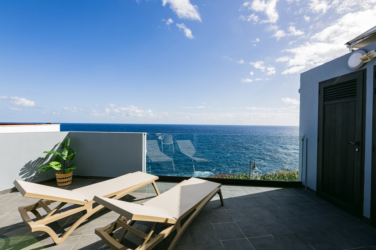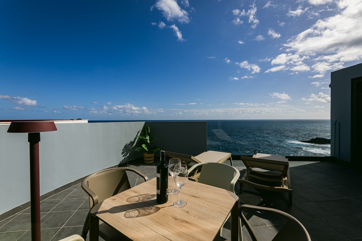 Vår lilla "Piso Azul" ligger i Puerto Tazacorte. Den har en stor takterrass, med en magnifik utsikt över Atlanten och kustremsan La Palma. Vår lägenhet är enkel och samtidigt mycket kärleksfullt och individuellt inredd. Beläget direkt på promenaden, är det bara några meter till stranden. I den lilla byn hittar du allt du behöver: en liten stormarknad, apotek, restauranger, barer och en liten busstation.