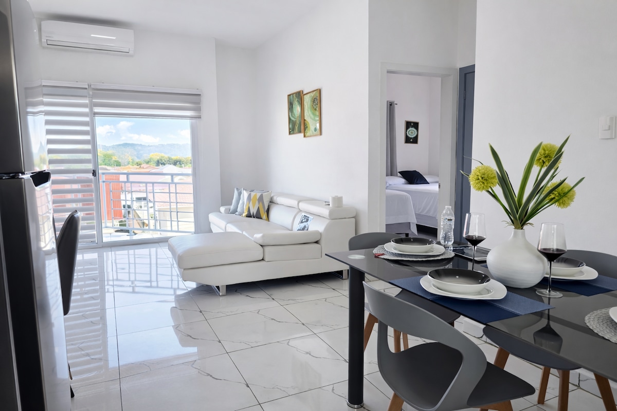 Luta dig tillbaka och koppla av i detta lugna, eleganta boende med pool, Business Center, tak och gym och med 3 smartTvs 70", förstklassiga sängar och fullt utrustat kök; för att få dig att vila och känna dig bekväm medan du har en affärsresa eller bara har en flykt med familj och vänner. Nära till restauranger och shopping i bästa området i stan! NETFLIX, PRIME VIDEO; DISNEY+; MAX; PARAMOUNT; APPLE TV tillgänglig för din underhållning!!! Elektrisk reservförsörjning endast för gemensamma utrymmen vid strömavbrott.