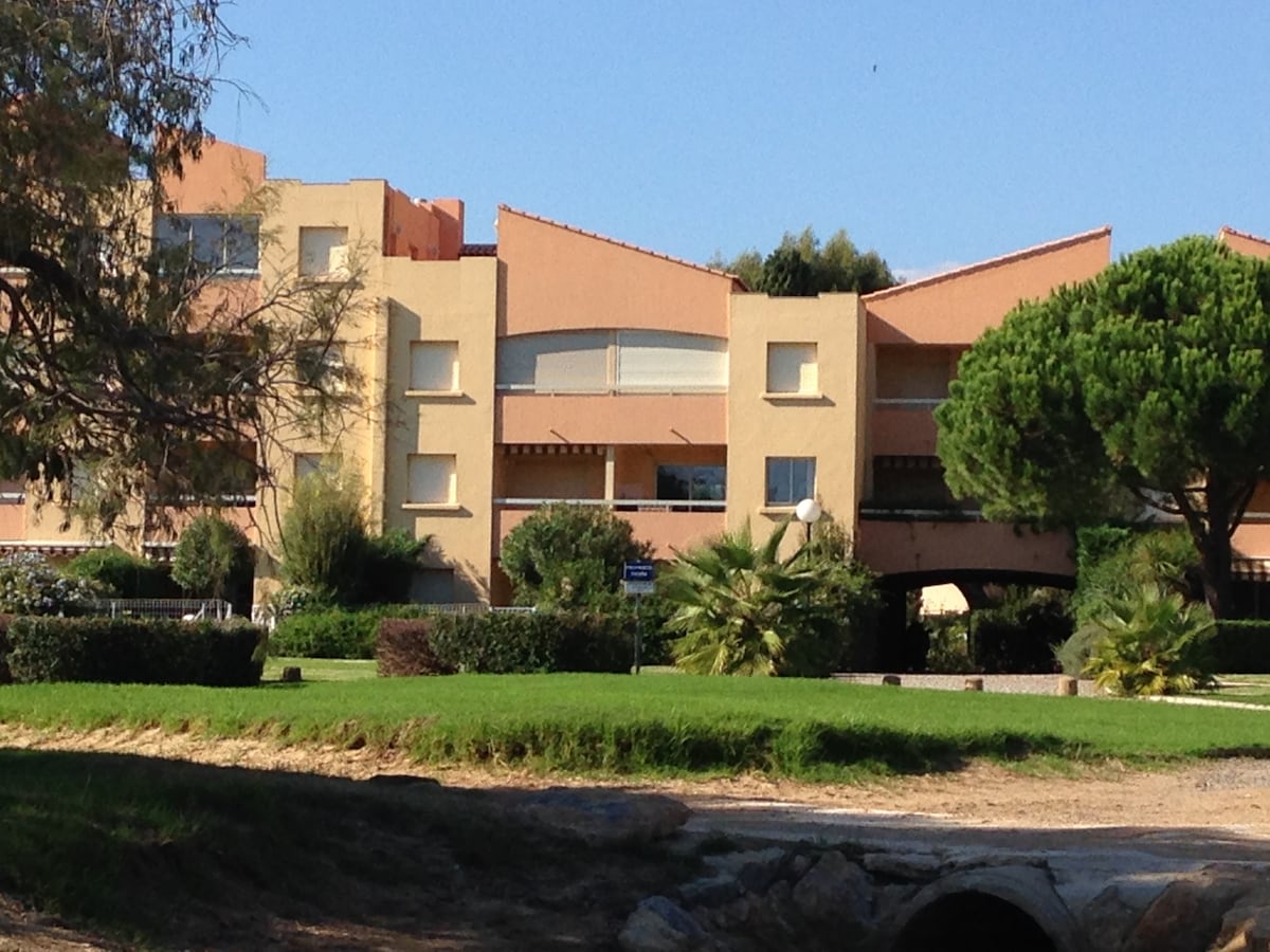 appt t2 36m2 clim tout confort 4 pers, situé au 1er et dernier étage d'une charmante résidence quartier l'argentière la Londe les maures. Plage à 150m. Exposé sud grande terrasse 18m2 en partie couverte, vue jardins. Une chambre , lit en 140 et grande armoire . Séjour donnant sur terrasse, clic clac 2 pers, TV, coin cuisine : plaque induction, four, micro ondes, frigo congel, lave linge , cafetière Salle d'eau, wc séparé. Parking devant la résidence Commerces 100 m Animaux non admis non fumeur
