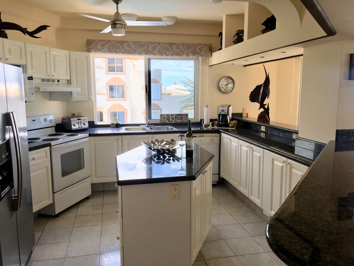 En fullt möblerad lägenhet som ligger intill Marina Mazatlan golfbana och fem minuter från stranden. Gångavstånd till kongresscentret och Galeria Mall. Komplexet har en vacker pool, utomhus träningsutrustning, solstolar och grill. Queen-sängar i rummen och en nedfällbar soffa i vardagsrummet. 32" TV i båda sovrummen. Kontrollerad entré och en utsedd parkeringsplats.