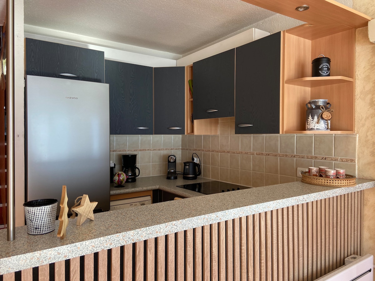 2-rumslägenhet 1 sovrum, 4 bäddar belägen på bottenvåningen i residensen Pic du Midi i La Mongie. 33 m² med terrass på 8 m2 med sydläge. Vardagsrum med en bäddsoffa 140 cm. Sovrum med 2 bäddar 140/200 mezzanin. Kokvrå i vardagsrummet med spishäll, ugn, vattenkokare, diskbänk, brödrost, kaffebryggare och Nespresso, kassaskåp. TV. Badrum med badkar och separat toalett. Skidförvaring. Privat underjordisk parkering. Uppvärmd pool under skid- och sommarsäsongen. Gym. Tvätt. Wifi