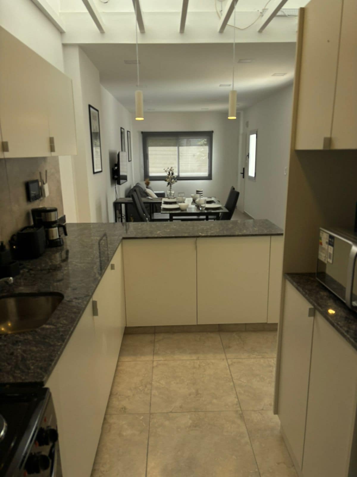 Modern och bekväm lägenhet för 1 eller 2 personer. Här finns ett fullt utrustat kök-matsal. Rummet kan ställas in med en dubbelsäng eller två enkelsängar, det har en Android-TV och en fläkt. Perfekt för att koppla av, arbeta eller njuta av en semester. Det har varm/kall luftkonditionering i båda rummen och WiFi. Funktionellt utrymme, väl luftkonditionerat och redo att välkomna dig. Hyra per dag och per person. Vi ser fram emot att träffa dig!