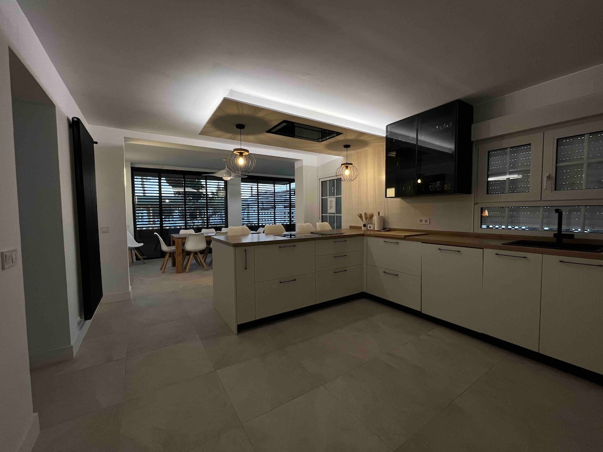 Rymligt och bekvämt hus med 5 sovrum, filmrum, grill, pool och bord och fotboll. Hi-spd int (1 GB), A/C och fullt utrustat kök. Lugnt område, med privat säkerhet och panoramautsikt över Henaresdalen. Bil krävs. Perfekt för att koppla bort. ✅Tillgänglig lyx ✅Eldstäder ✅EV-laddare ✅Stenugn ✅Rymliga utrymmen med naturligt ljus ✅Panoramavy ⭐"Allt är v. w. lkd aftr, the rms r hg, the bds r v. comf. &, bäst av allt, det finns en hm-bio för w. flms.." ⭐"Sandra var att. hela tiden och var rly snäll.." Lägg till min annons i din favoritlista genom att klicka❤️ i det övre högra hörnet.