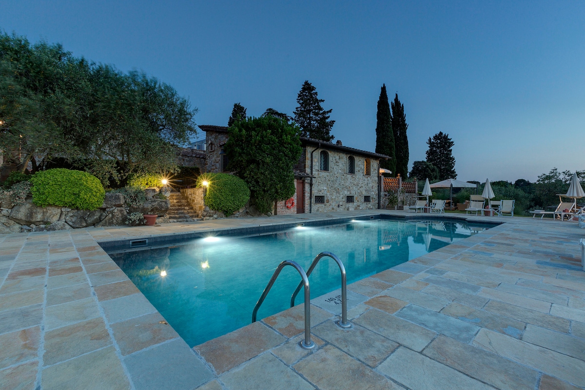 Om du letar efter ett idylliskt läge i hjärtat av den klassiska Chianti, nedsänkt i vingårdarna och olivlundarna i de vackra toskanska kullarna, på gården i en historisk villa på ‘500, kom sedan till vår ladugård!! Det finns en dominerande position med en fantastisk utsikt, där du kan njuta av hisnande solnedgångar. Husets totala oberoende, den mysiga trädgården, den stora loggian gör att du kan tillbringa vistelser i fullständig sinnesro. Våra omdömen är din bästa garanti.