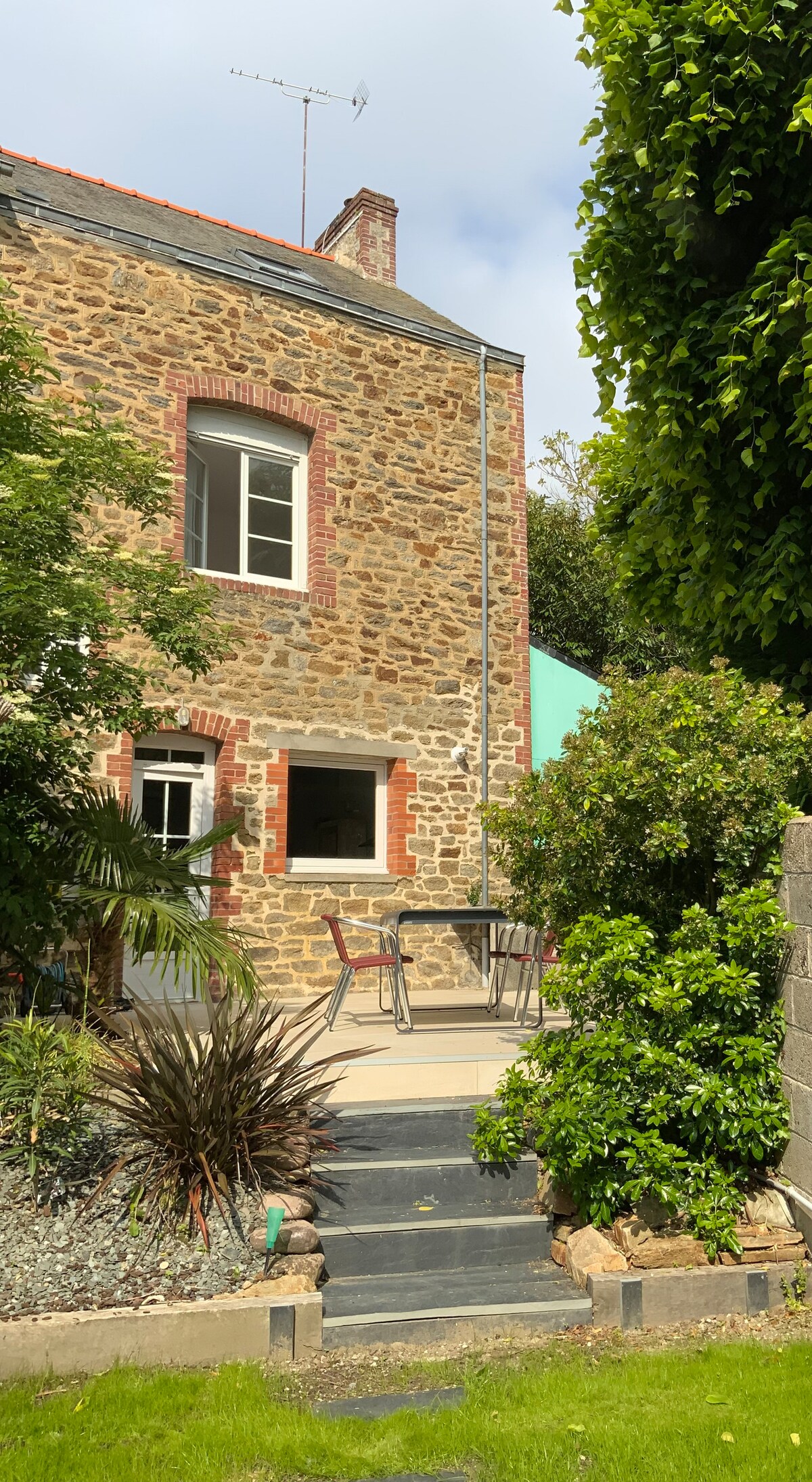 Charmigt renoverat lantligt hus. Beläget i en grön och lugn miljö, mycket nära en vacker liten strand och kuststigen, 5 minuters bilresa från centrum av Dinard. Huset består av en ingång, vardagsrum med gasspis, vackert badrum, separat toalett, 3 sovrum på 1: a våningen : säng 160, elsäng 180 (delbart med 2x90, och barnrum med en säng 90x190) och ett 4: e sovrum under vinden (säng 140). Parkering och kollektivtrafik inom 50 m.