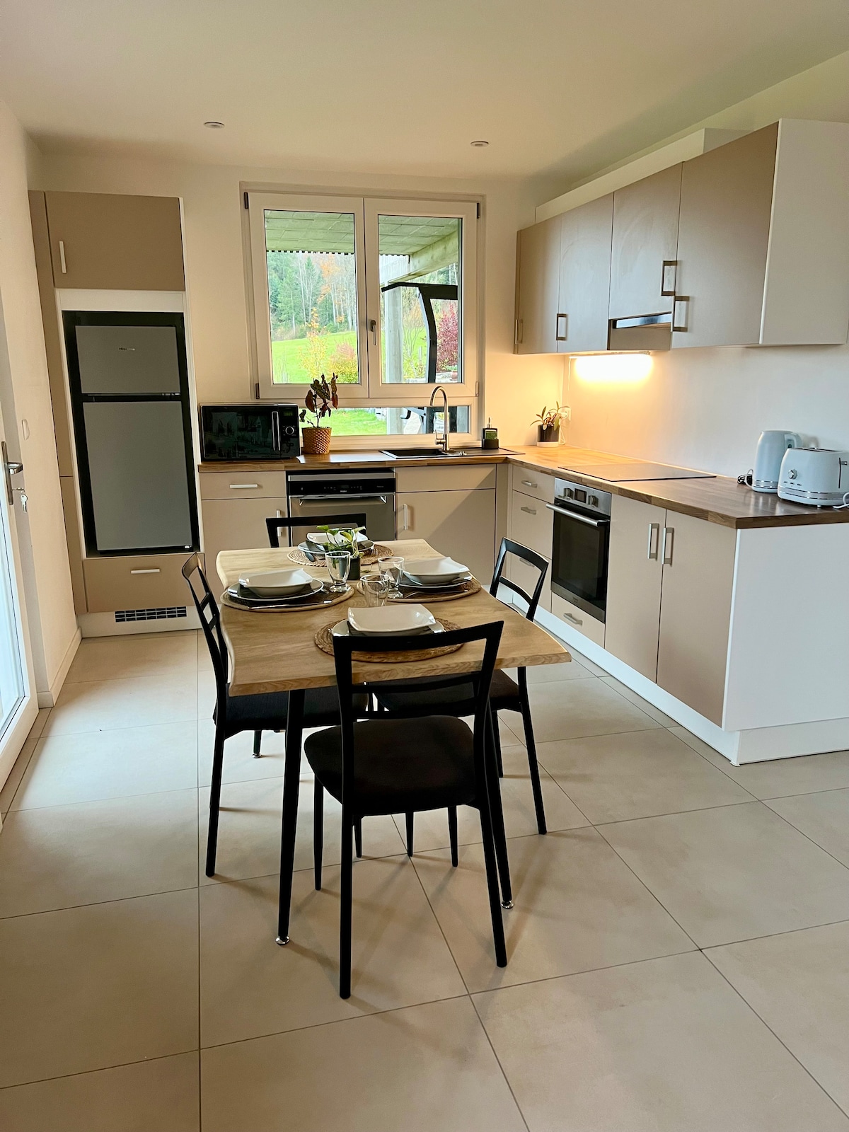 Miljövänlig stuga med träram från 2024 belägen 1035 m över havet i stadsdelen BAYARD. Yta på 120 m2 med tillgång till ett lekrum på 20 m2. Rymligt och fullt utrustat vardagsrum/kök 3 sovrum med dubbelsäng: 2 med sängar 180x200 och 1 med två sängar 90x200 2 badrum med italiensk dusch 1 nät i vakuum för att njuta av utsikten 50 m2 uteterrass med jacuzzi och solbad med fri tillgång; med panoramautsikt över Risoux-skogen och Mont d'Or.