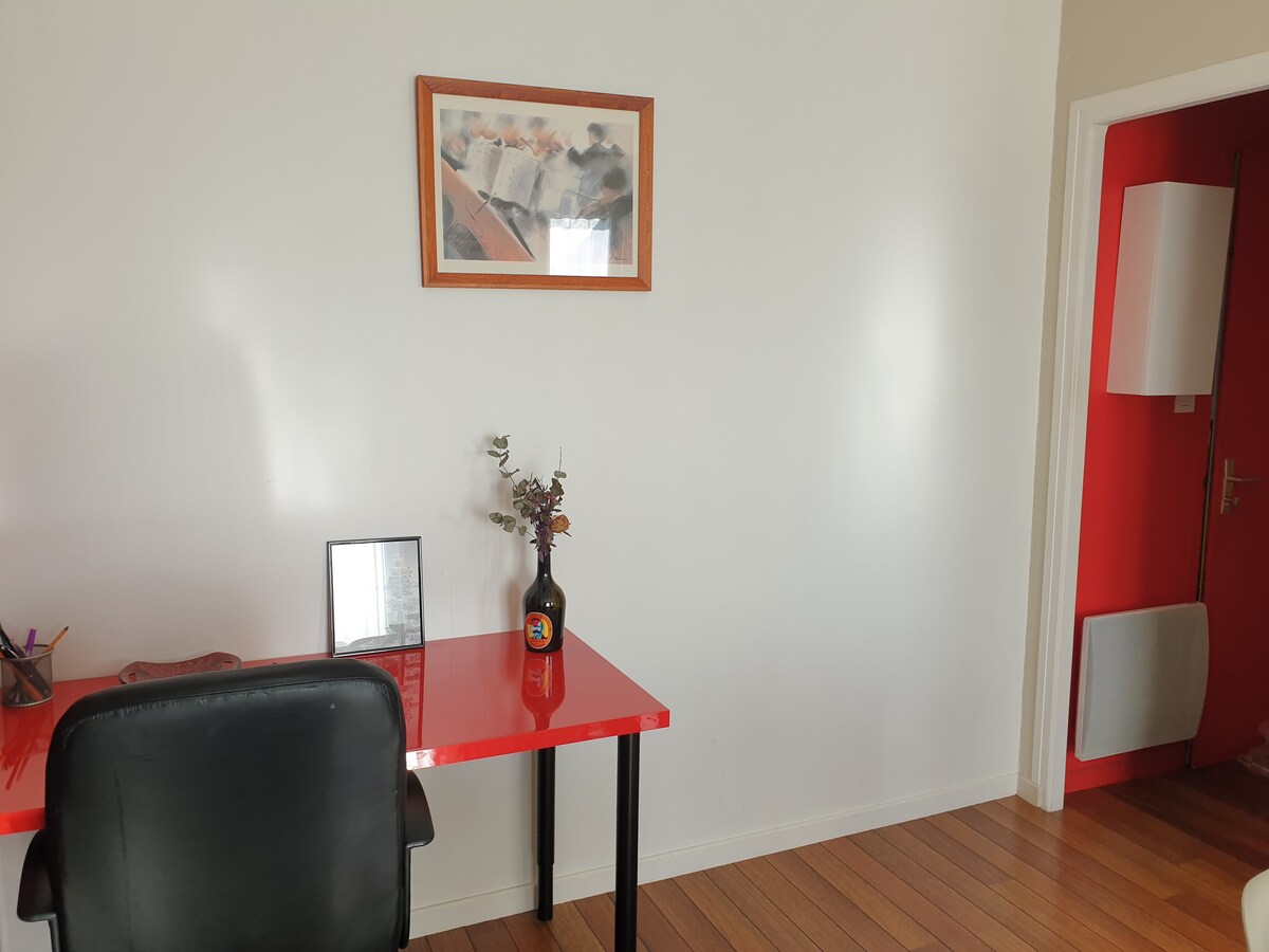 Bekväm studio, tyst och ljus (klassificerad 2-stjärnig turist möblerad av turistkontoret i Vendée), på bottenvåningen i en liten bostad med tre lägenheter 5 minuters promenad från stadens centrum och dess butiker. Beläget i en dynamisk stad i hjärtat av en turistavdelning (Parc du puy du fou, stränder, poitevin träsk). 35 minuter från Les Sables d 'Olonne, 45 minuter från Nantes, 1 timme från La Rochelle och Angers. 5 minuters promenad från CHD Vendée