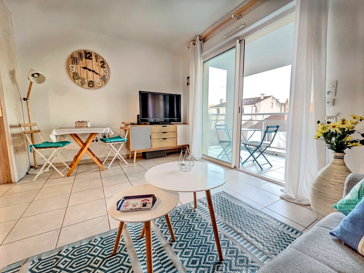 Detta fridfulla boende erbjuder en avkopplande vistelse för hela familjen. lägenhet mitt i staden, 2 minuters promenad från järnvägsstationen, 5 minuters promenad från den gamla hamnen och stadens centrum, renoverad med vackra bekvämligheter i lugn och ro, alla bekvämligheter, internet, TV, brädspel klassificerad 3 stjärnor möjlighet att ha ett garage som tillval mot en avgift i bostaden möjlighet att ta båten från den gamla hamnen till öarna många aktiviteter finns i närheten av bostaden till fots